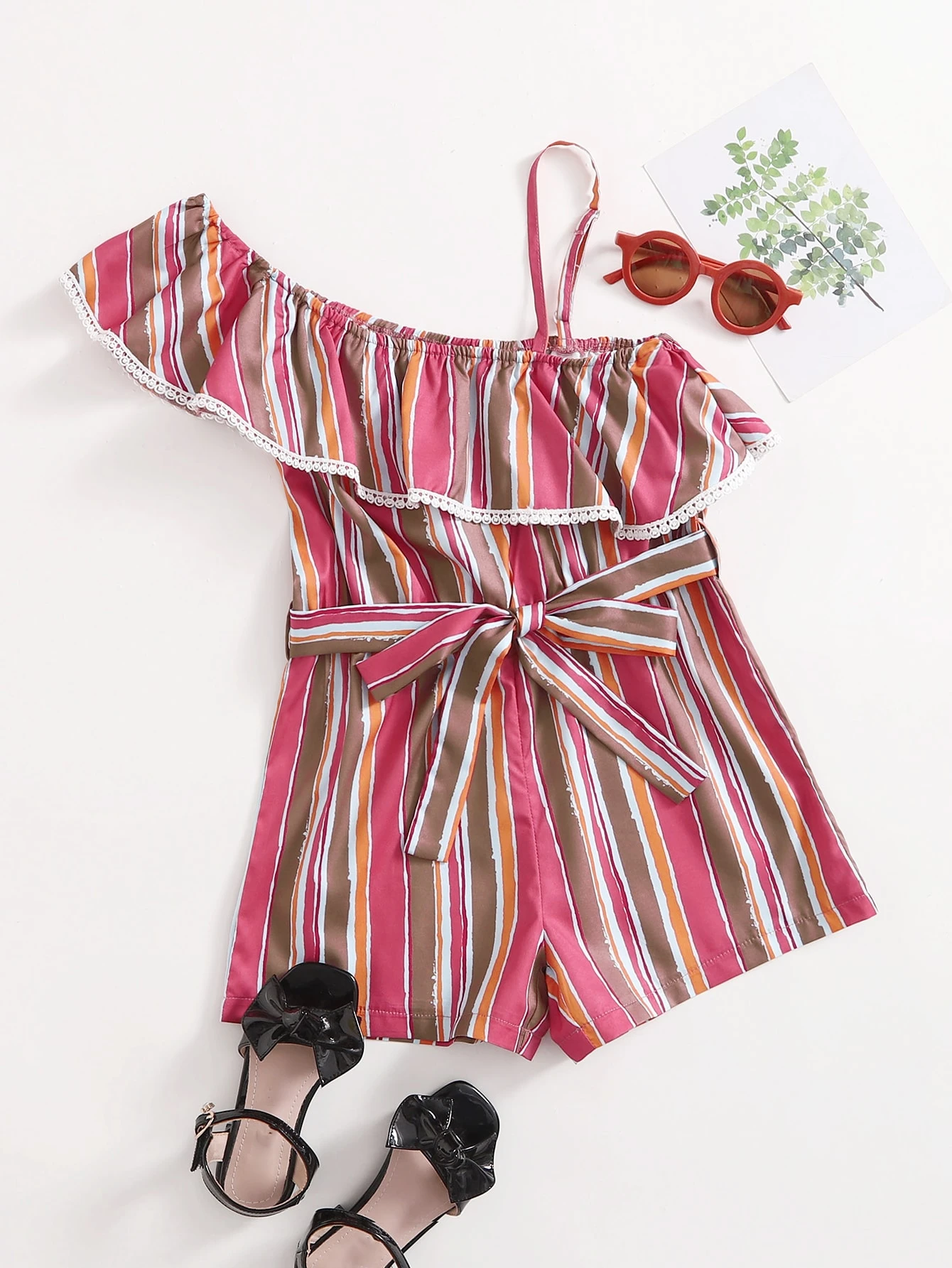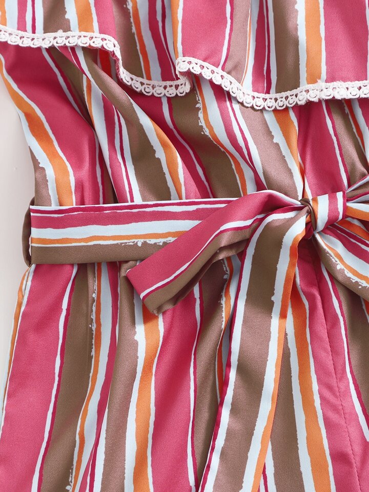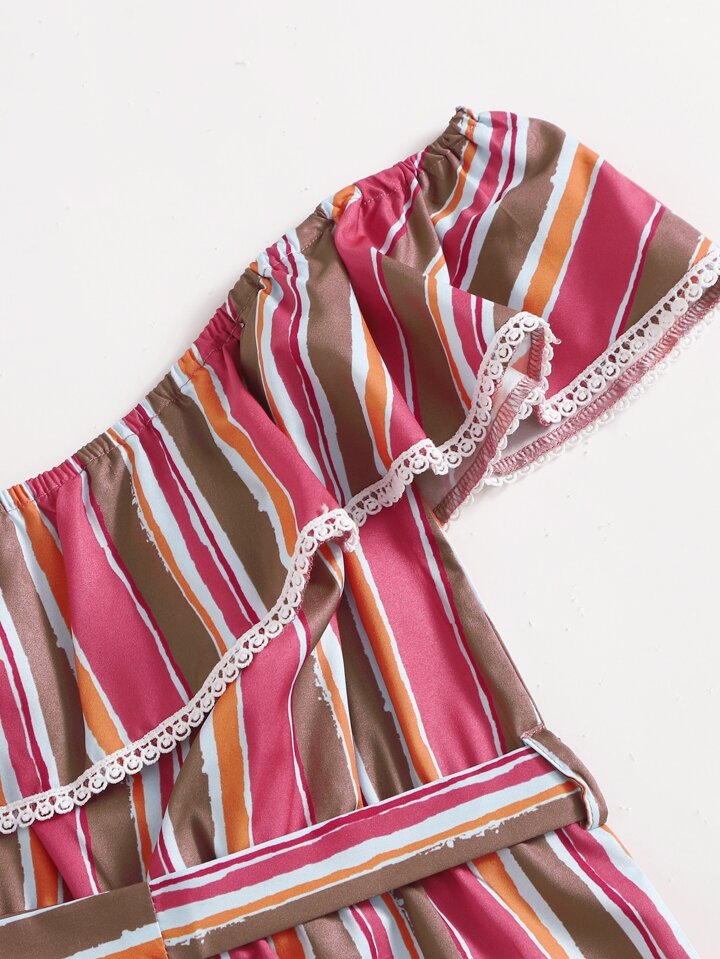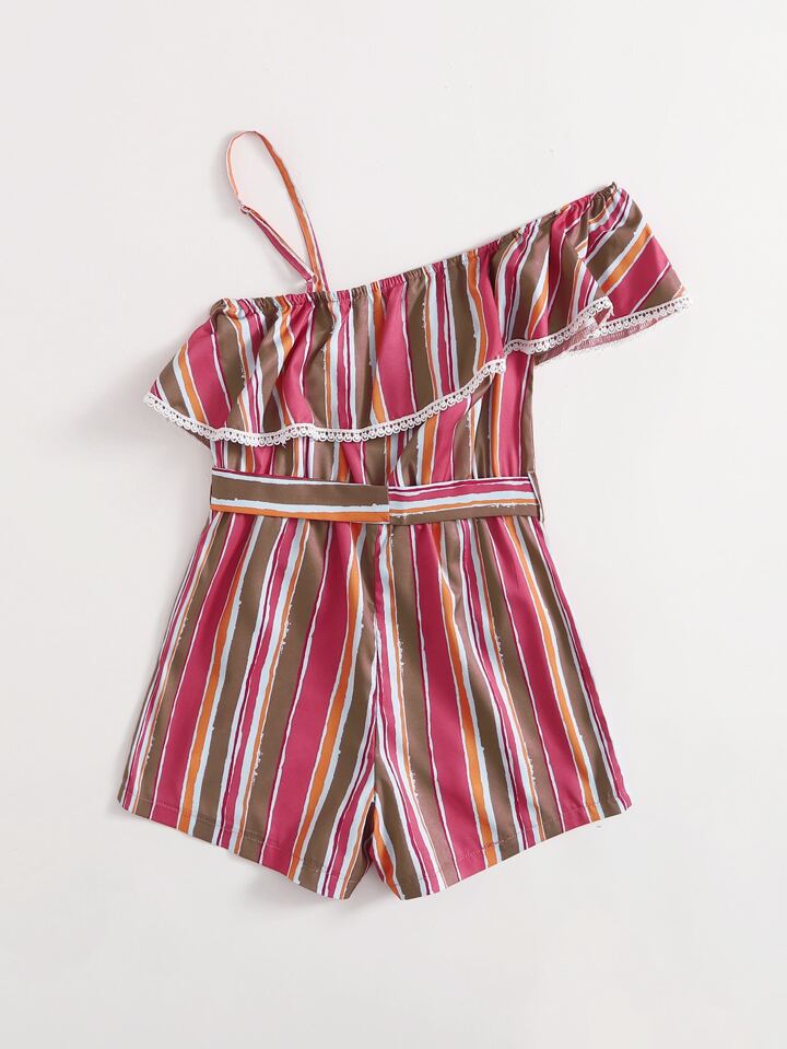 Combishort asymétrique à rayures ceinturé