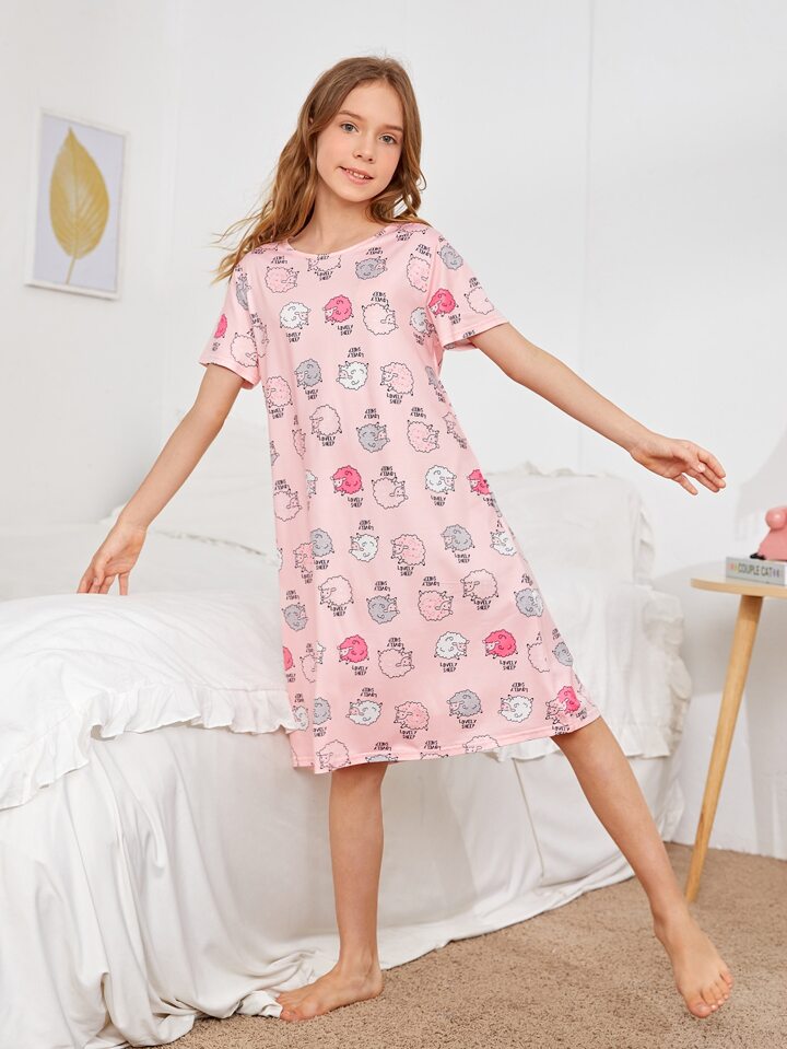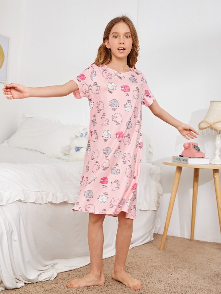 Fille Robe de nuit dessin animé et lettre