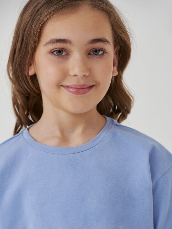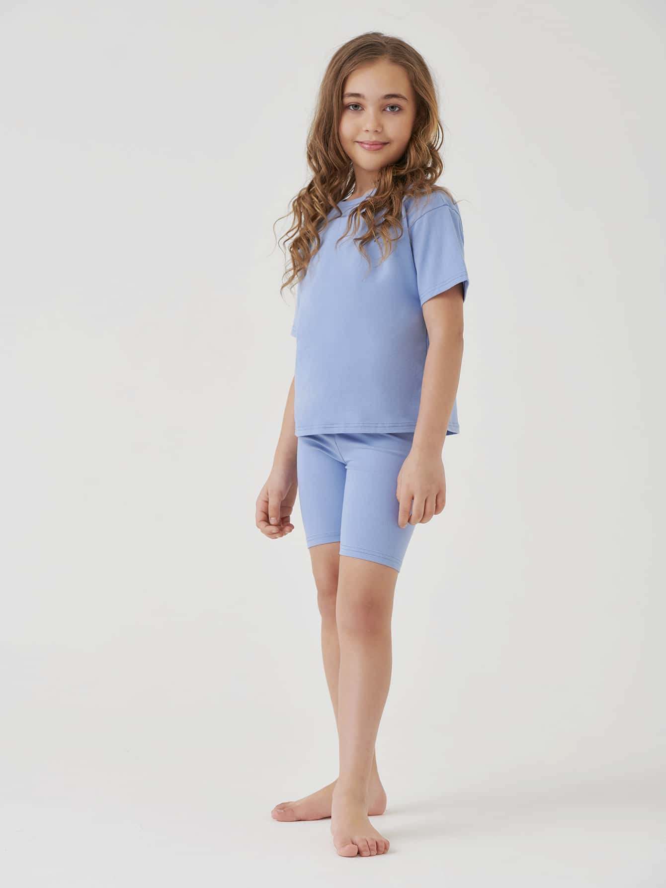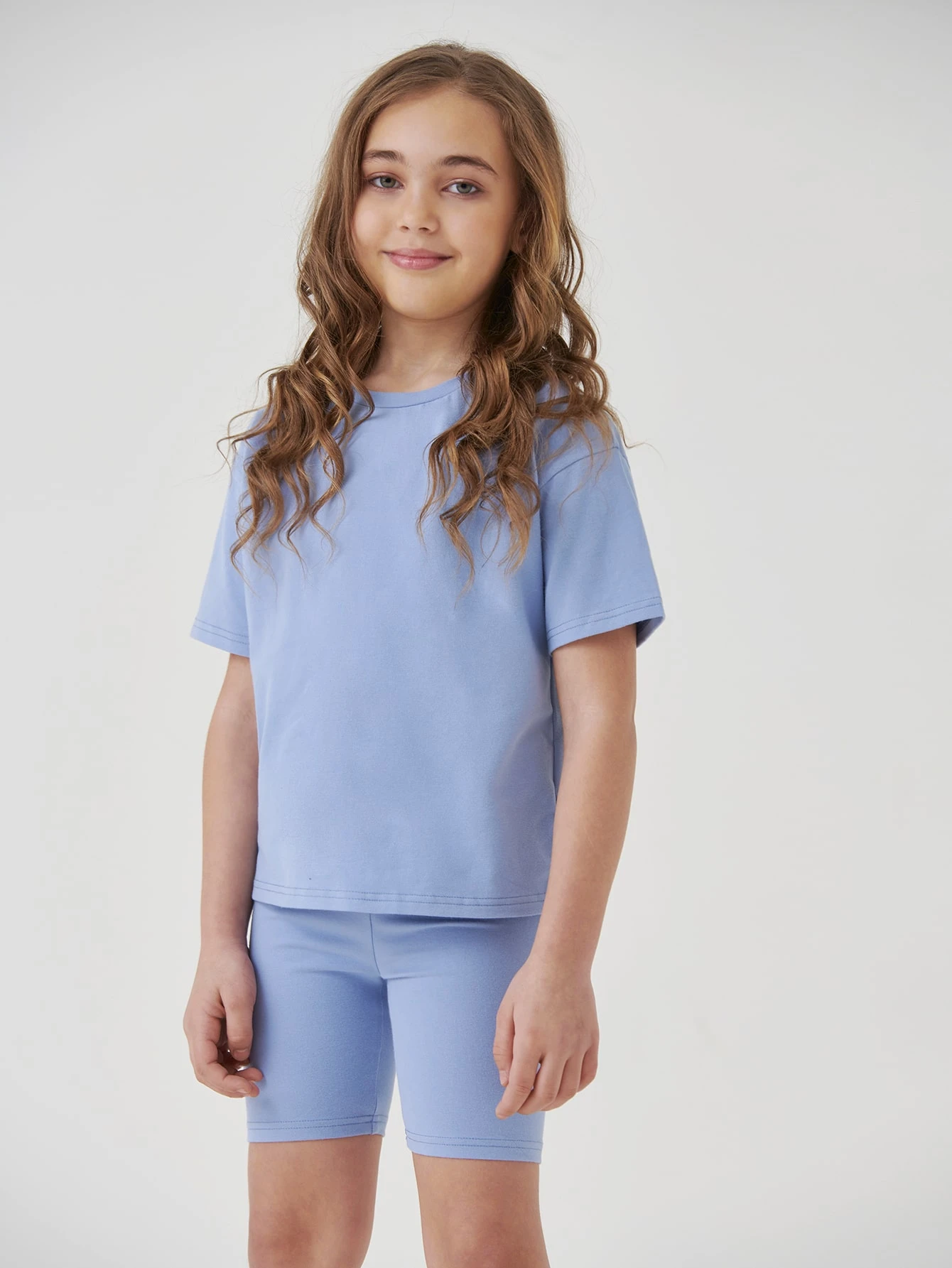 Fille Ensemble T-shirt en coton unicolore & Short de cycliste