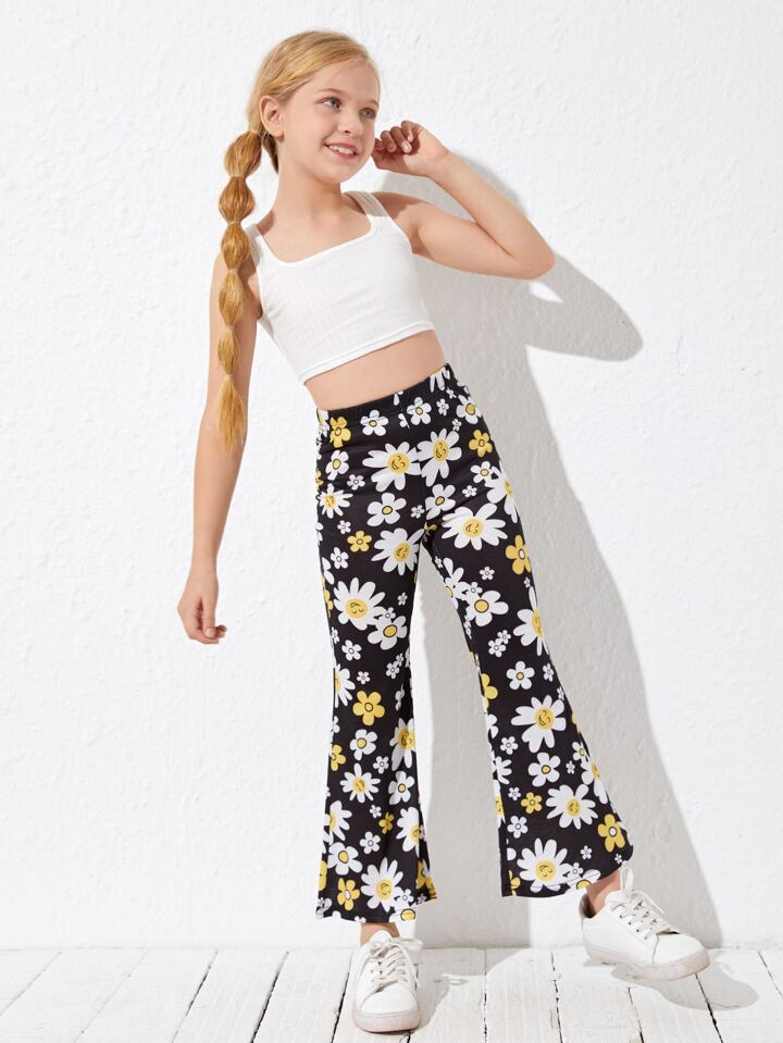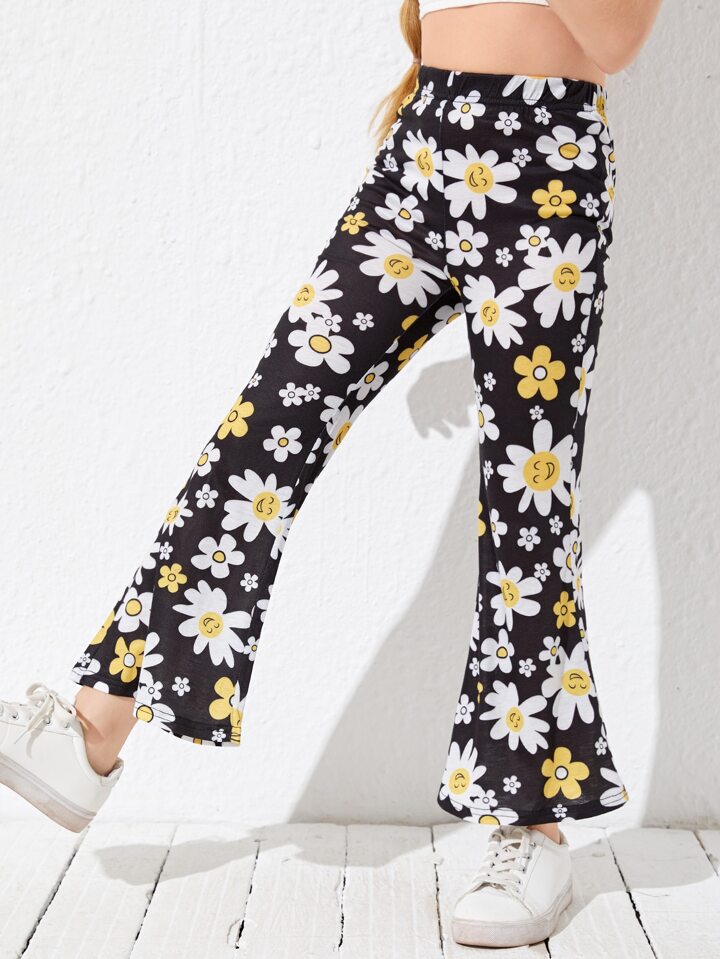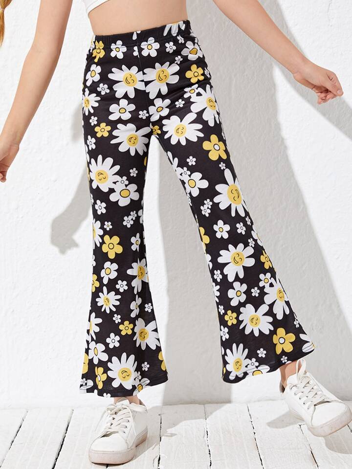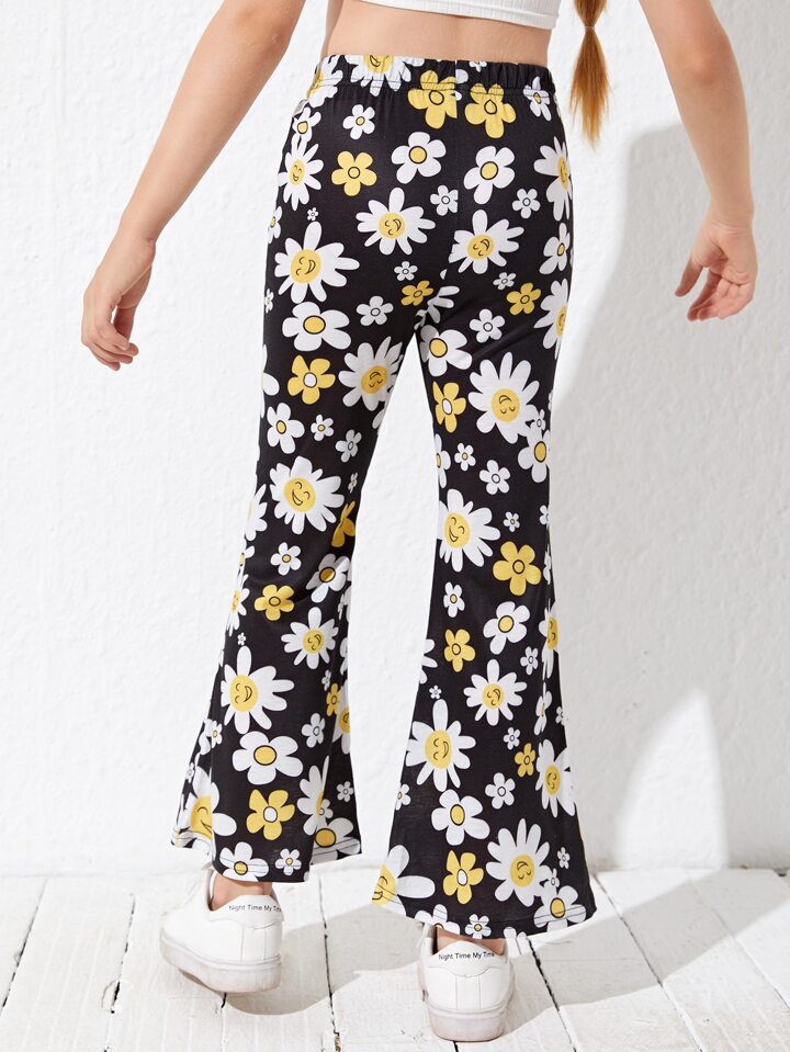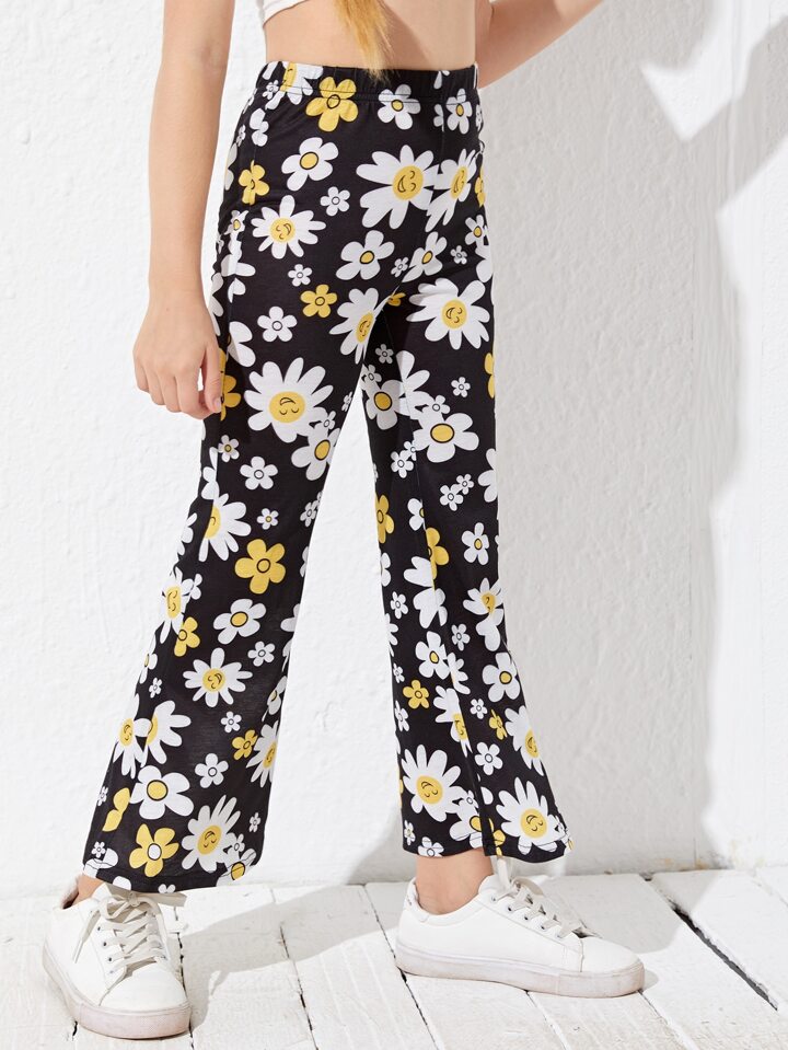 Pantalon évasé avec motif marguerite