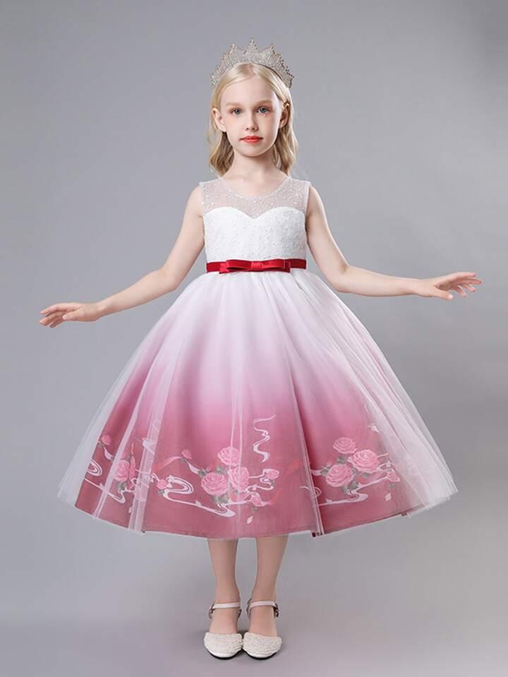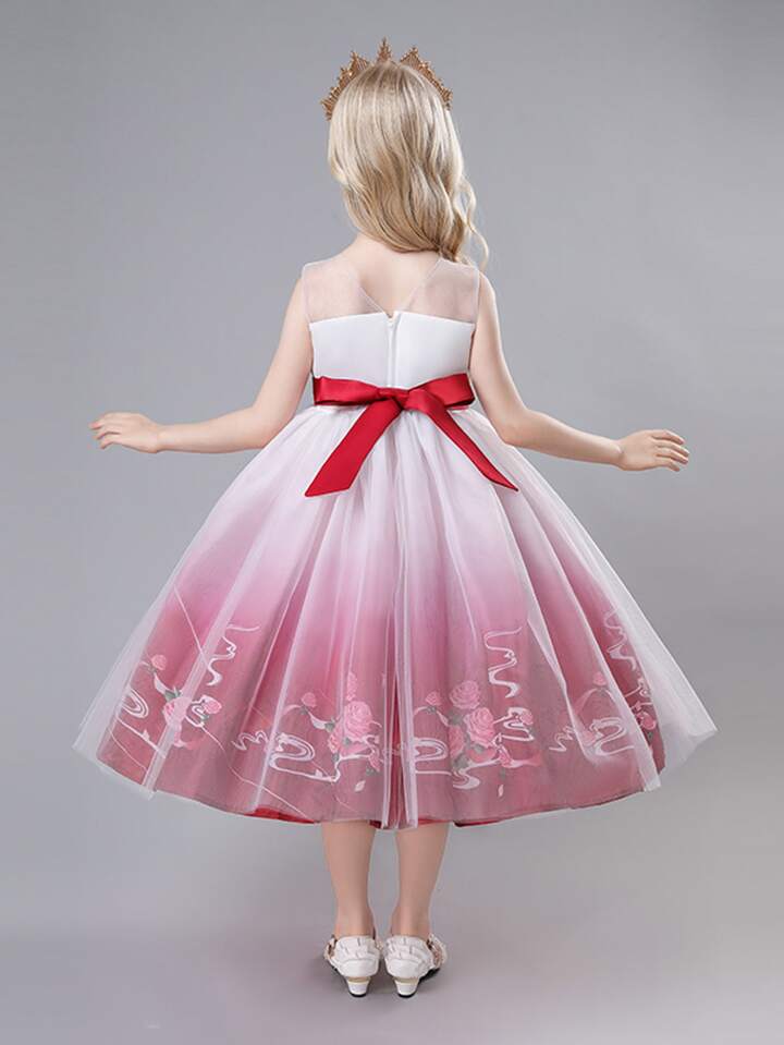 Fille Robe de bal fleuri en tulle à nœud papillon