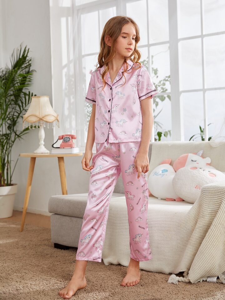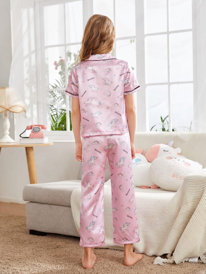 Fille Ensemble de pyjama pantalon & top col à revers à imprimé licorne