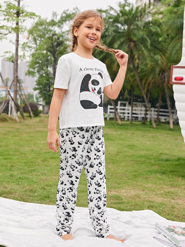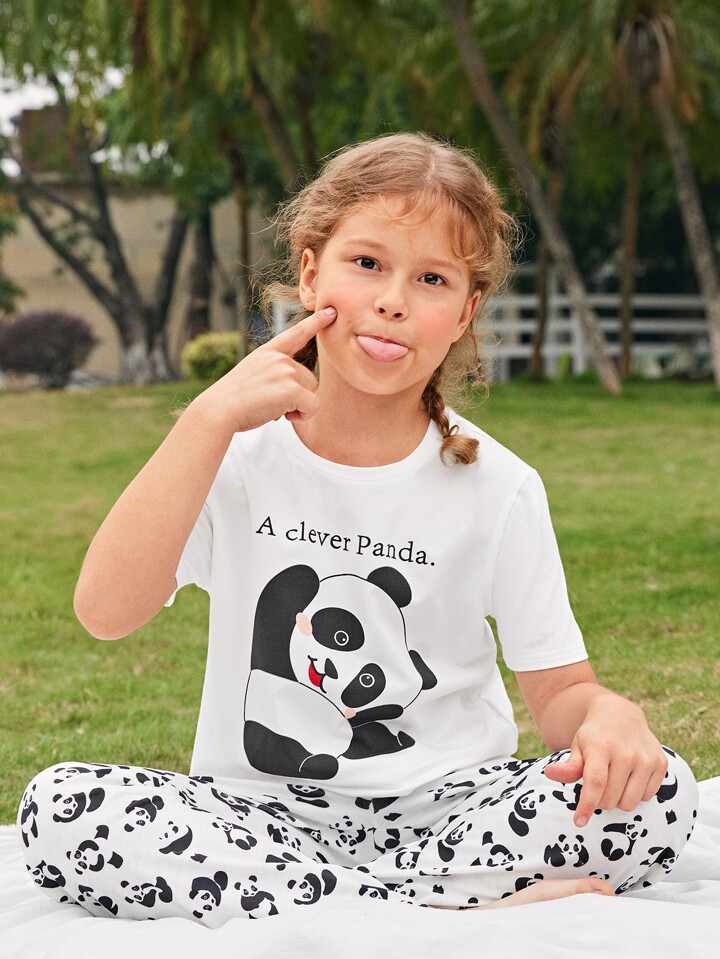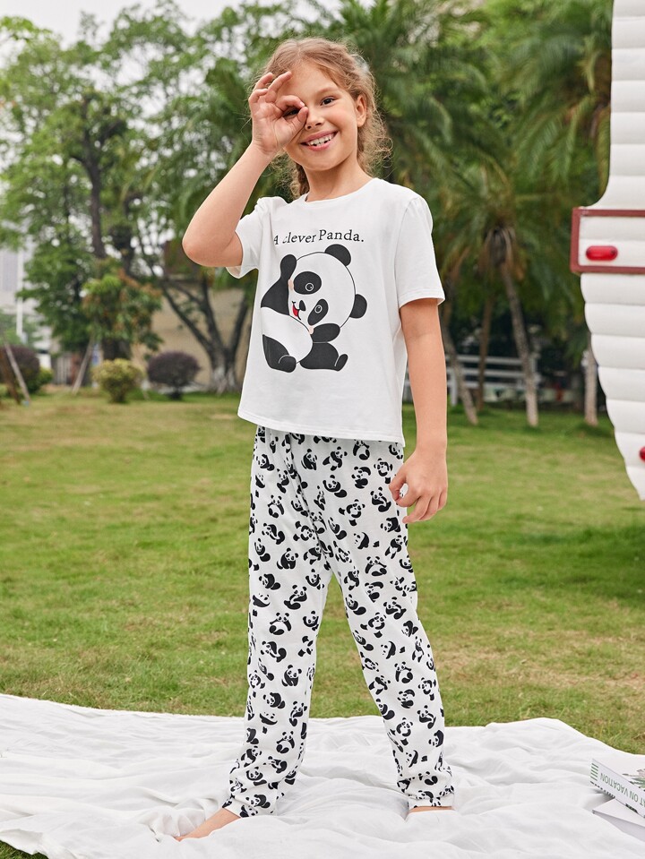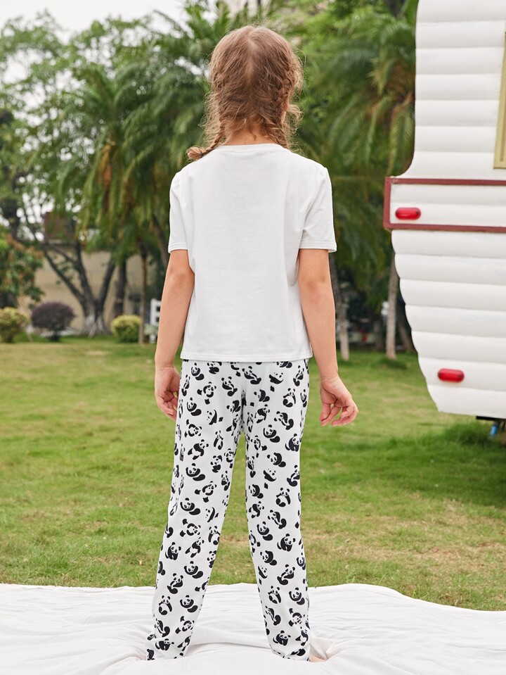 Fille Ensemble de pyjama t-shirt à imprimé lettre et panda & Pantalon