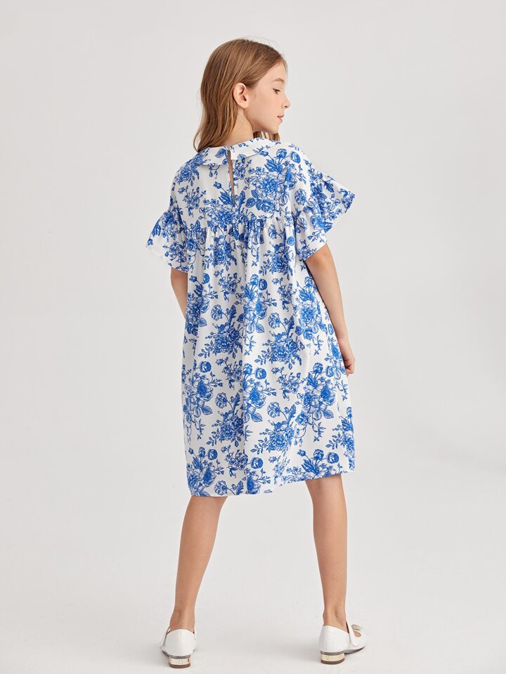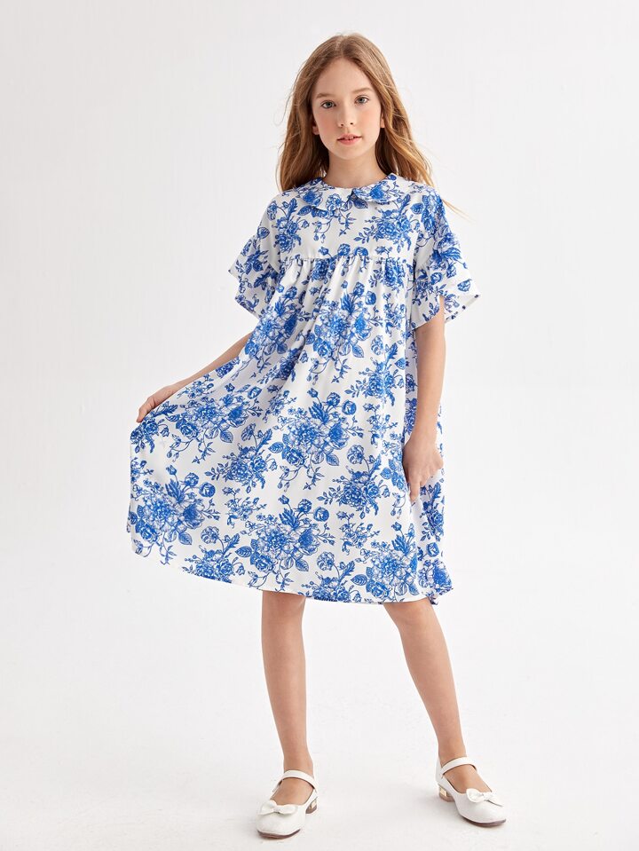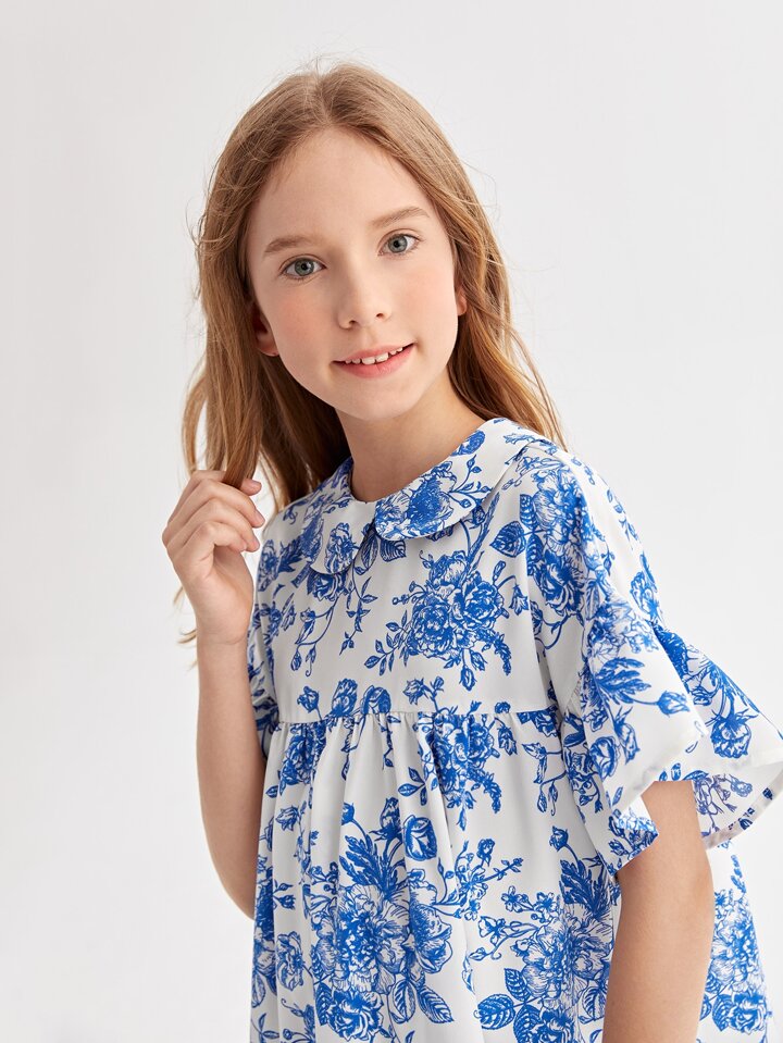 Fille Robe à col claudine fleuri