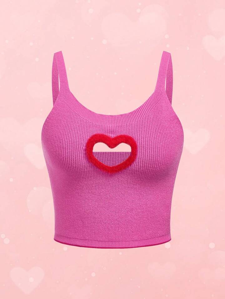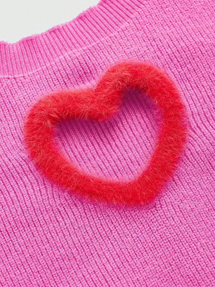 Top Court En Tricot Rose Doux Avec Cœur Creux Pour La Saint-valentin Pour Les Femmes