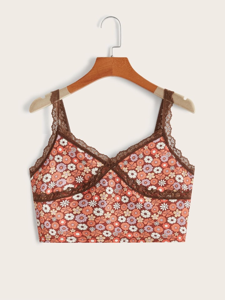 Goldendazeillustration Top à fines brides court en dentelle à imprimé floral