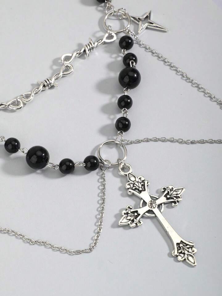 Goth 1 pièce Collier pendentif croix décoré de strass et de faux perles en alliage de zinc glamour pour femmes, pour la décoration quotidienne