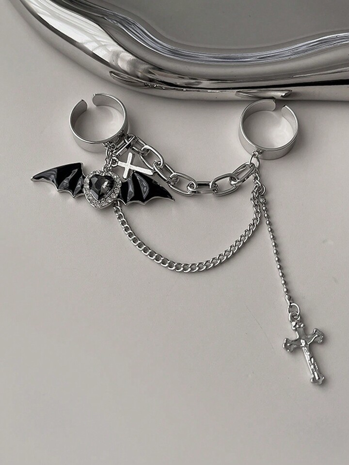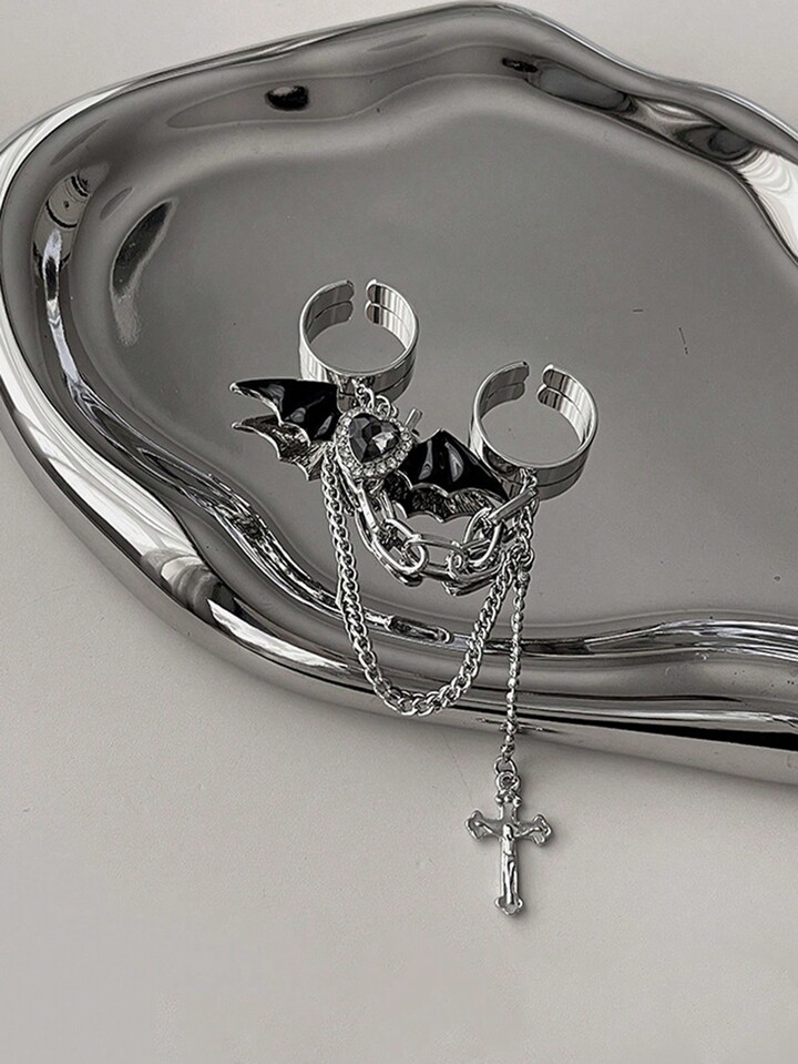 Goth 1 pièce Anneau Cœur & Croisé Design double Doigt