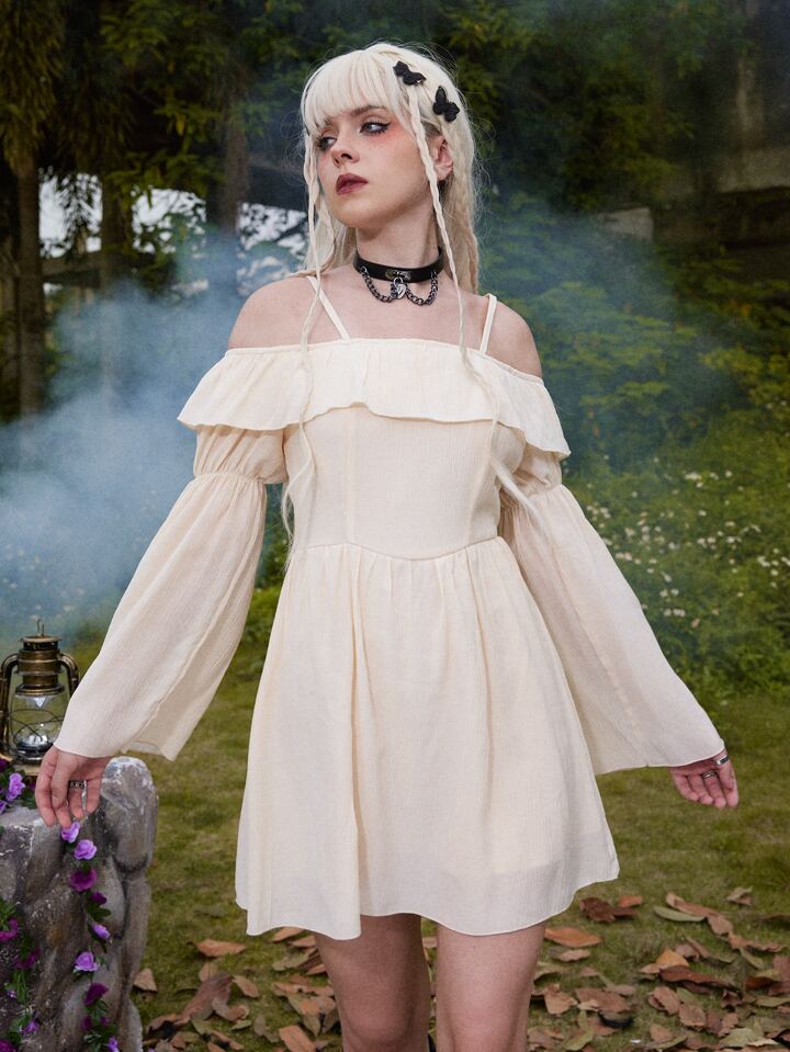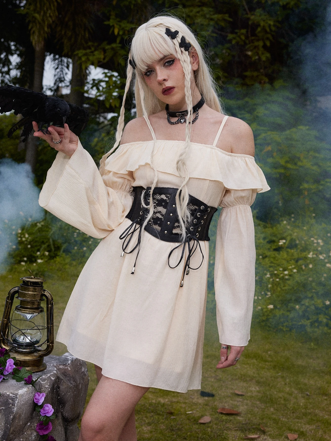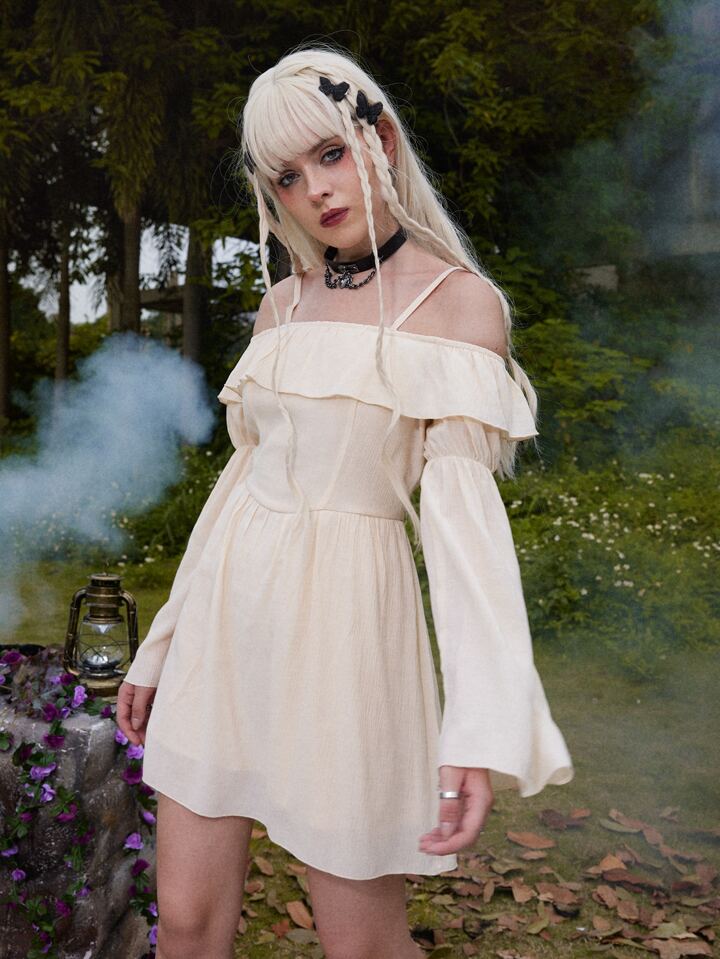 Goth 1 pièce Robe unicolore à volants à épaules dénudées