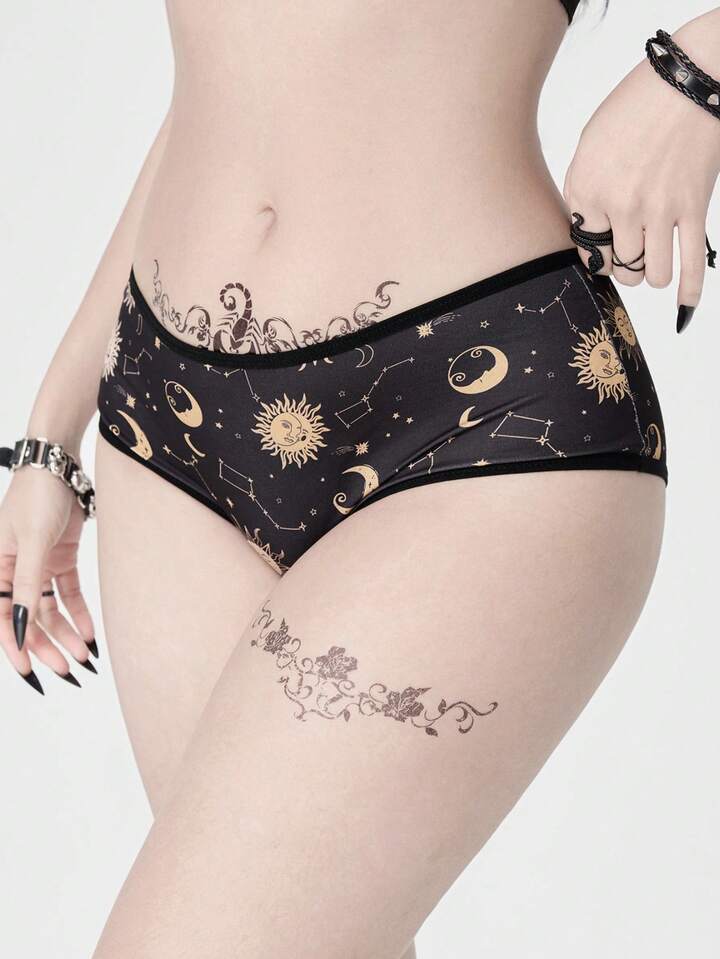 Goth 1 pièce Sous-vêtements culotte pour femmes avec motif soleil, lune et étoiles