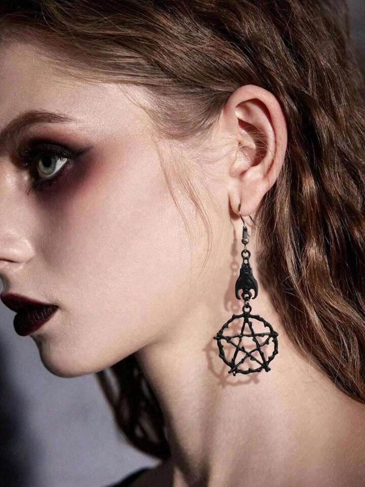Goth 2 pièces Pendants D'oreilles Ronds Mode En Alliage De Zinc Ajouré Étoile Pour Femme Pour Décoration Quotidienne