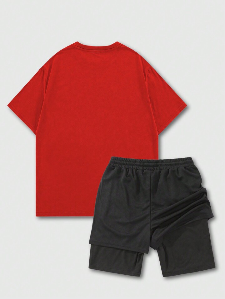 Goth Ensemble de 2 pièces de t-shirt à manches courtes imprimé d'anime japonais et de shorts pour hommes, convient pour porter tous les jours au printemps / été