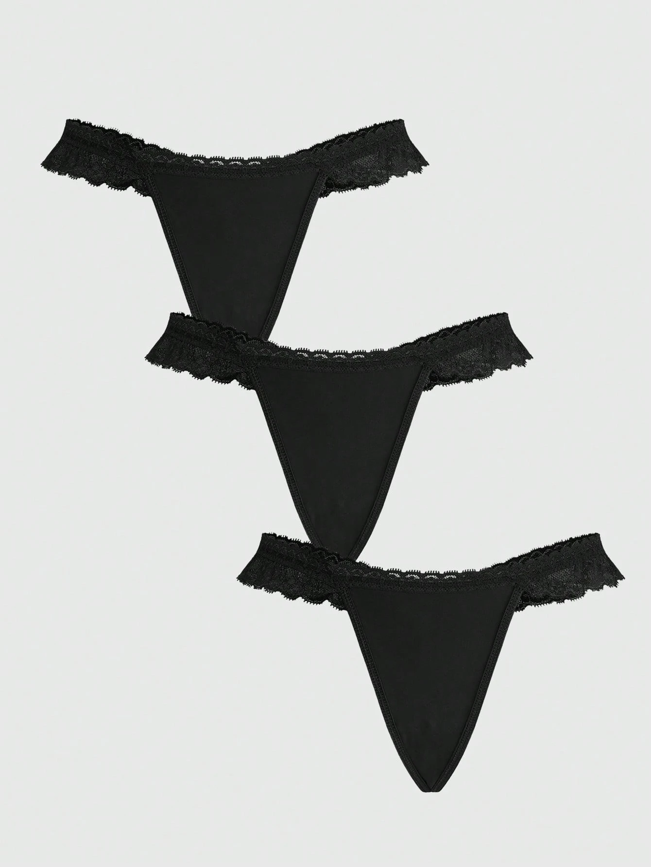 Goth 3 pièces/Paquet Culottes tanga pour femmes style sombre avec patchwork en dentelle