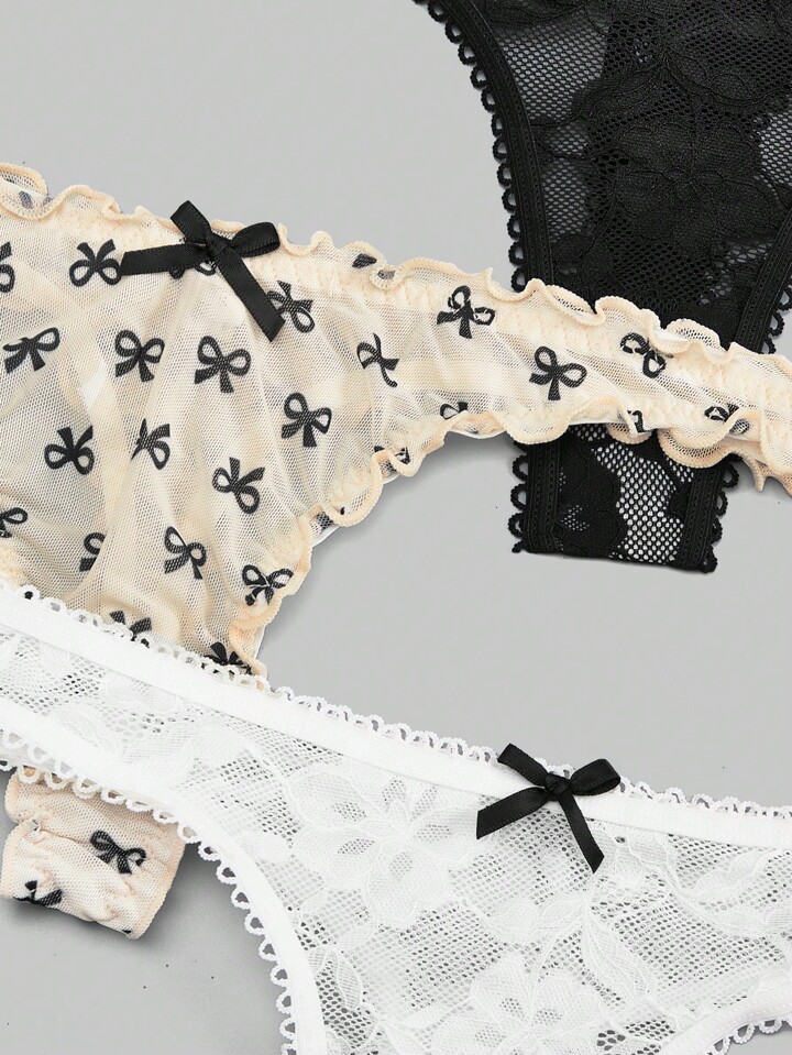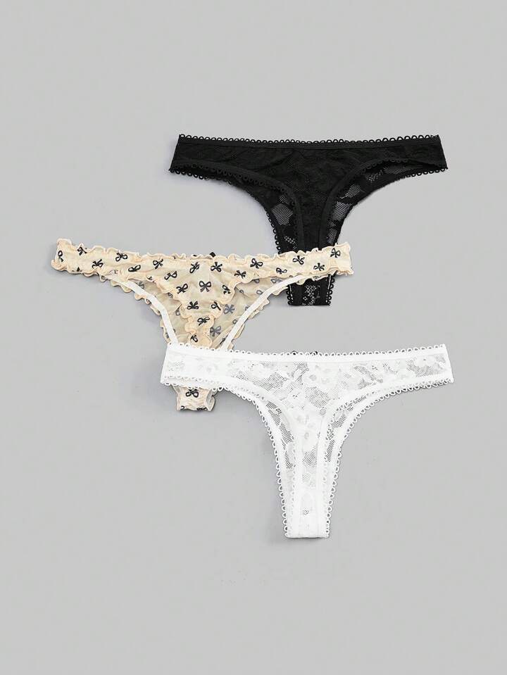 Goth Ensemble de 3 culottes pour adolescentes délicates, en dentelle et maille, avec imprimé papillon, couleur noire