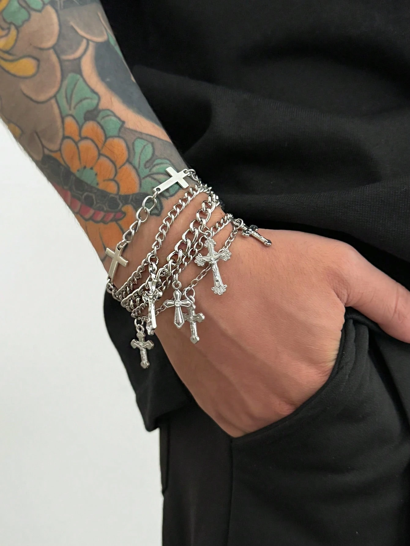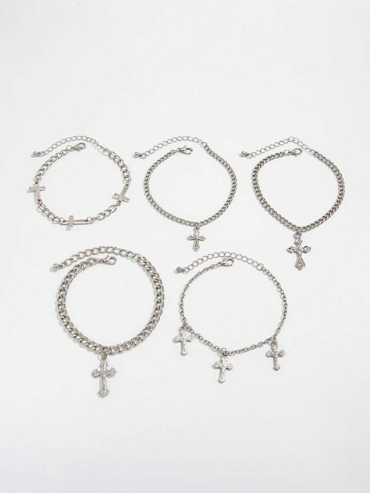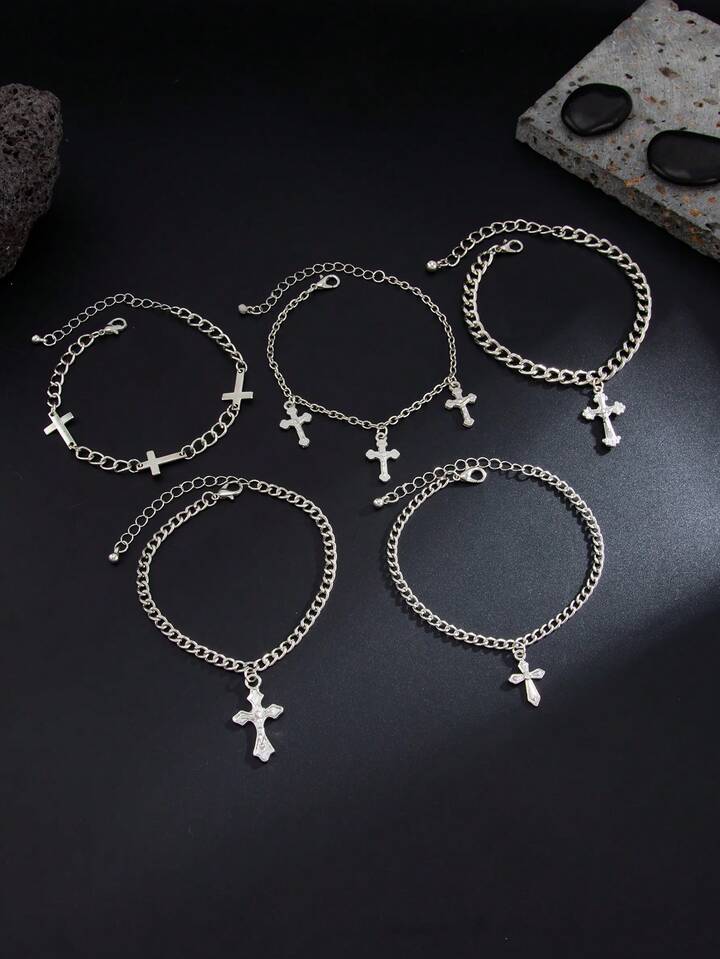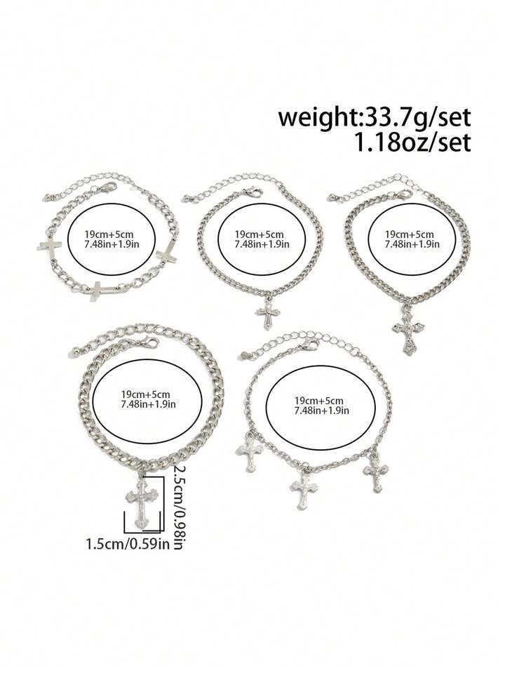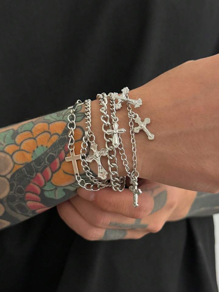 Goth 5 pièces Set de bracelets croix punk, accessoires en métal personnalisés hip hop pour hommes, convient pour le port quotidien, les fêtes et les cadeaux de vacances