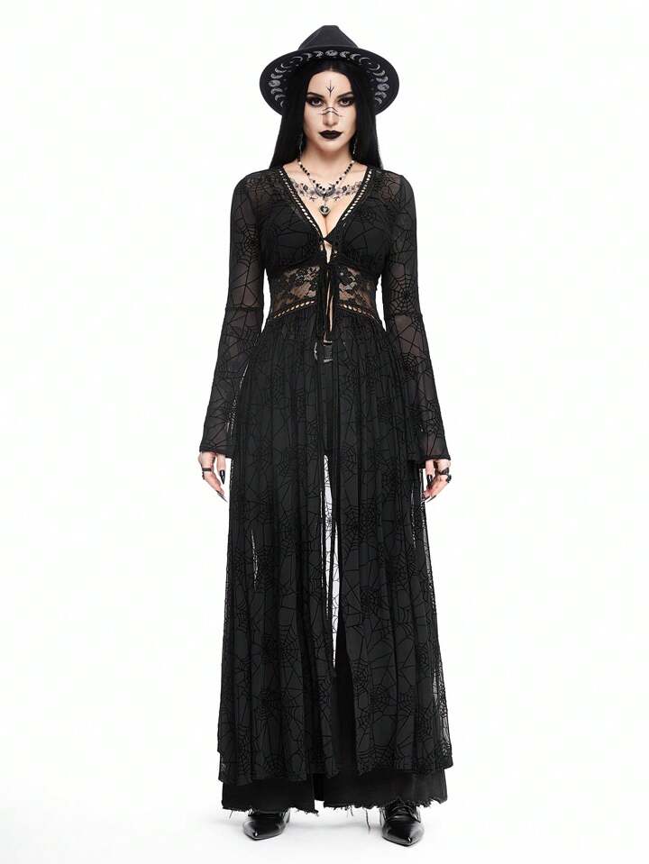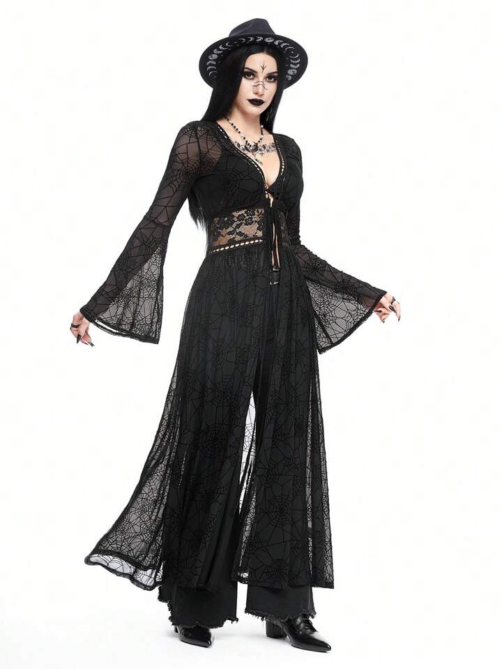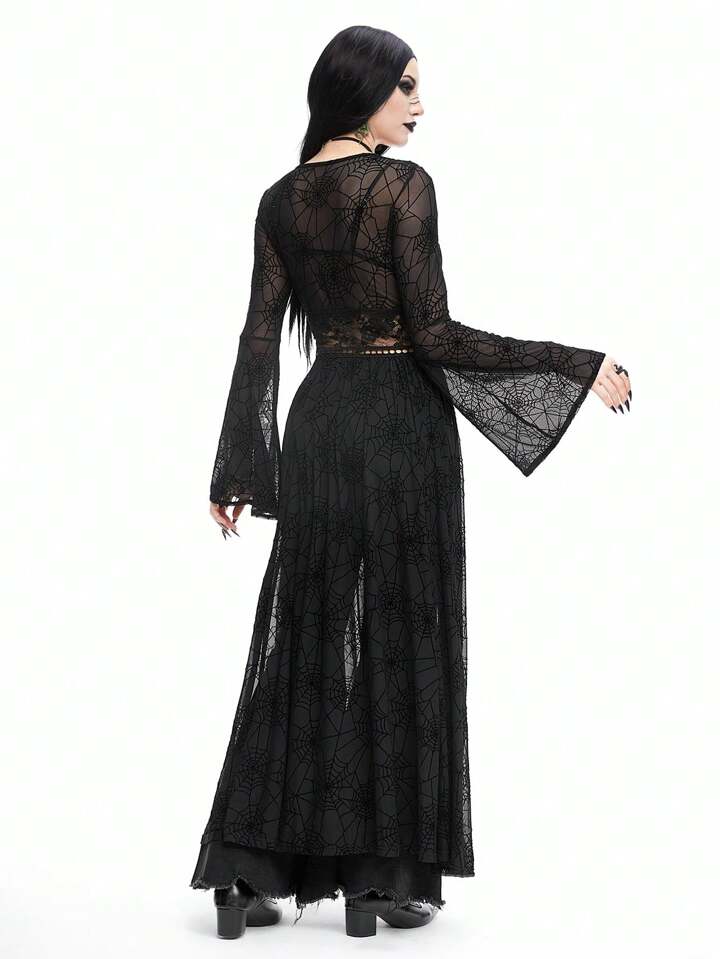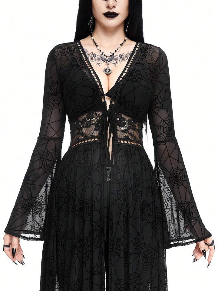 Goth Vêtement d'extérieur long et transparent pour femmes en peluche à mailles pour des vacances à la plage