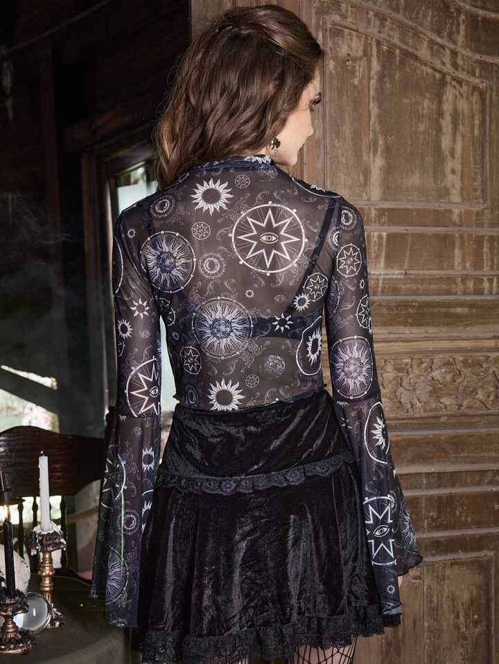 Goth Top court à manches cloche galaxie transparent (sans soutien-gorge)