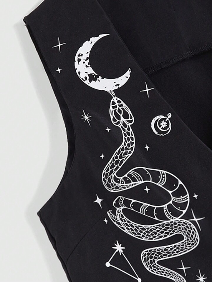 Goth Blouse sans manches à motif bohème de franges, lune, étoile et serpent, pour école