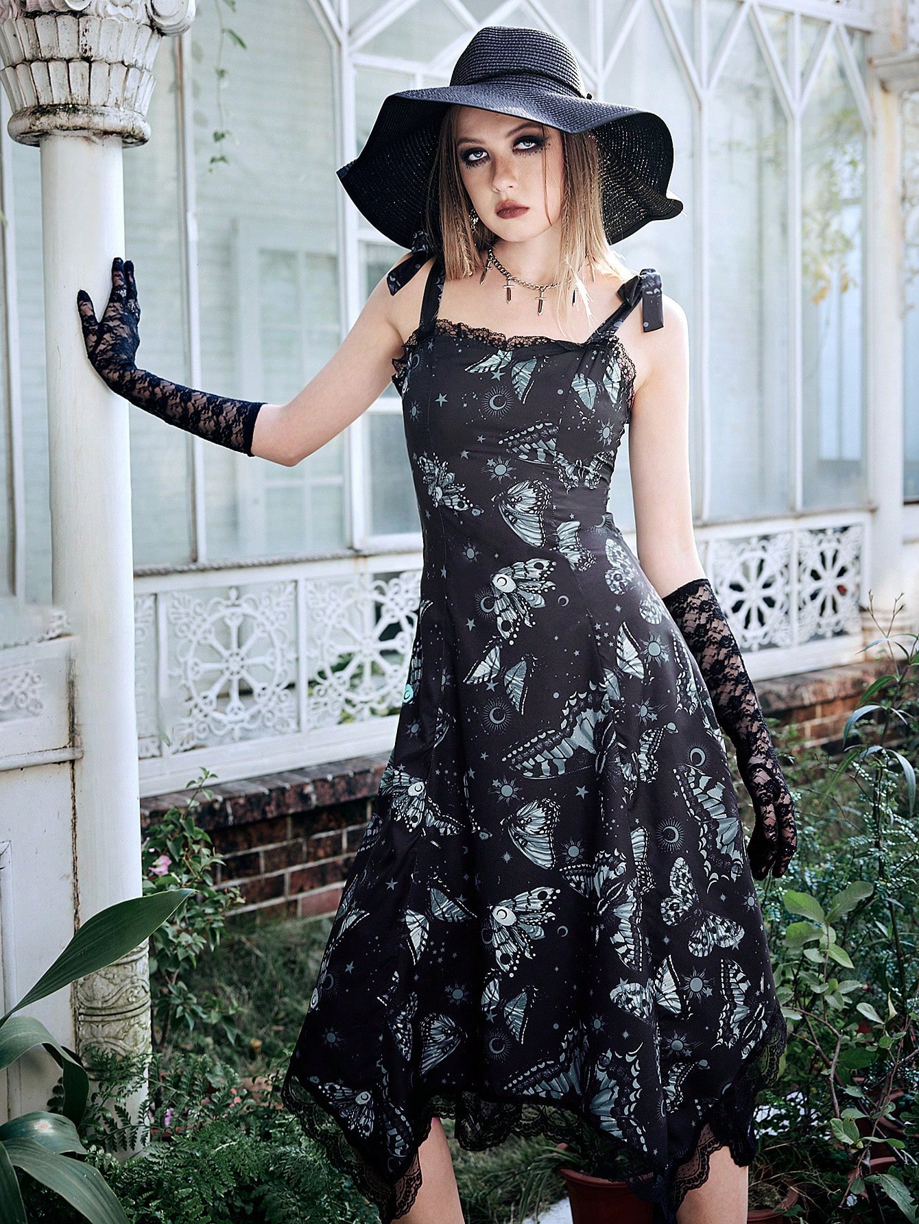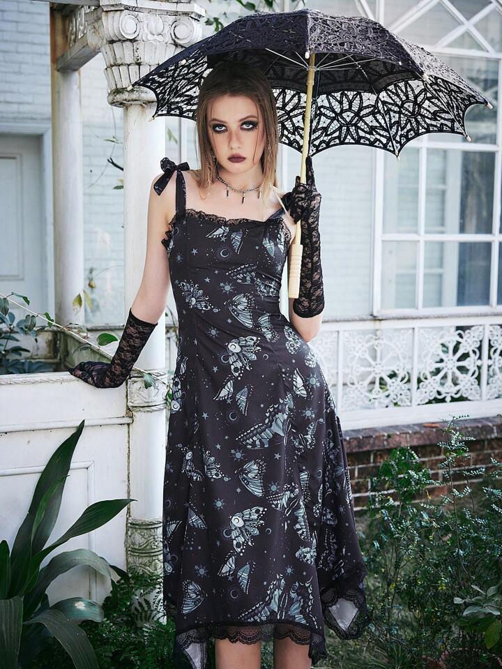 Goth Robe À Fines Brides Papillon À Épaule Nouée En Dentelle