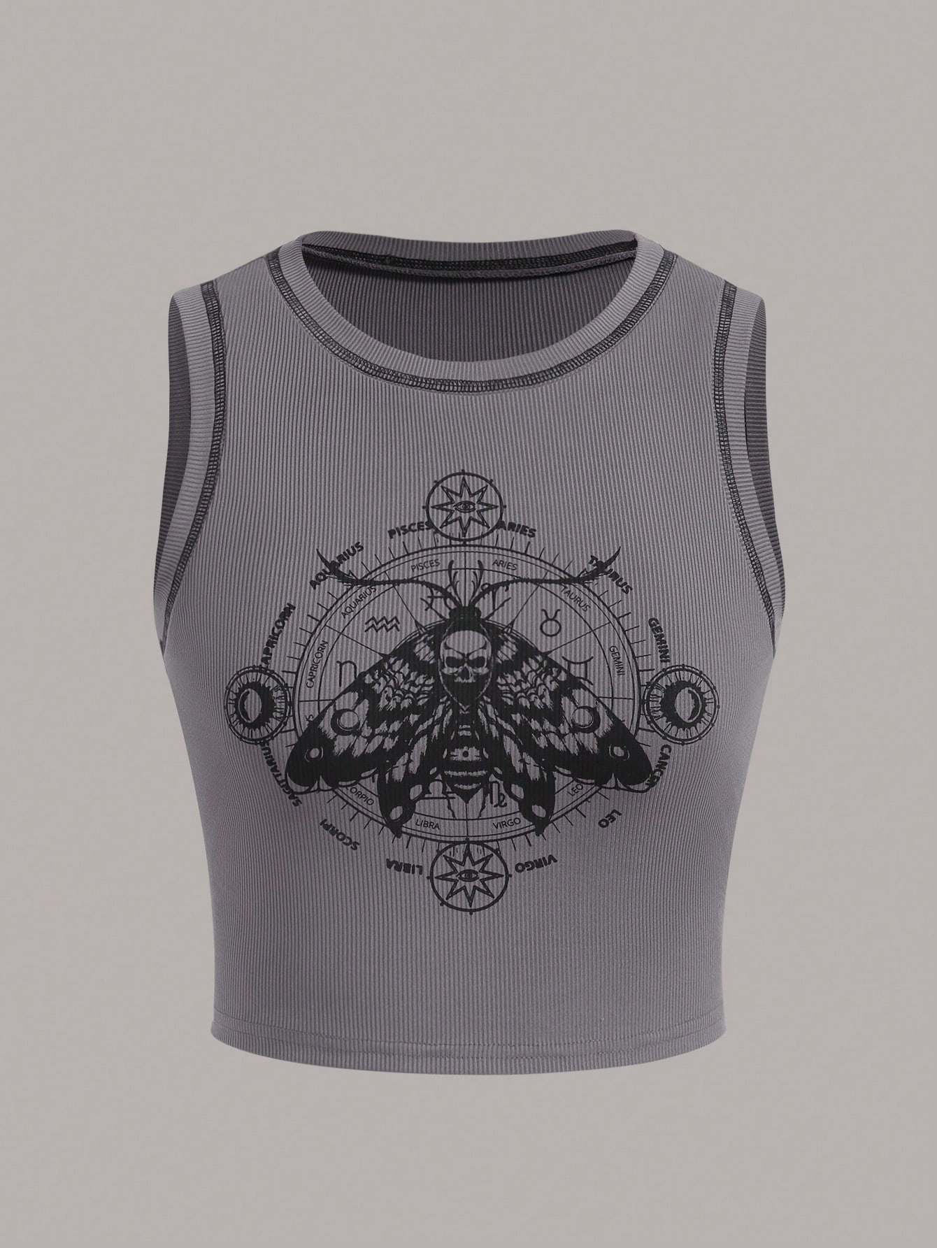 Goth Top Sans Manches Imprimé Papillon À Surpiqûres
