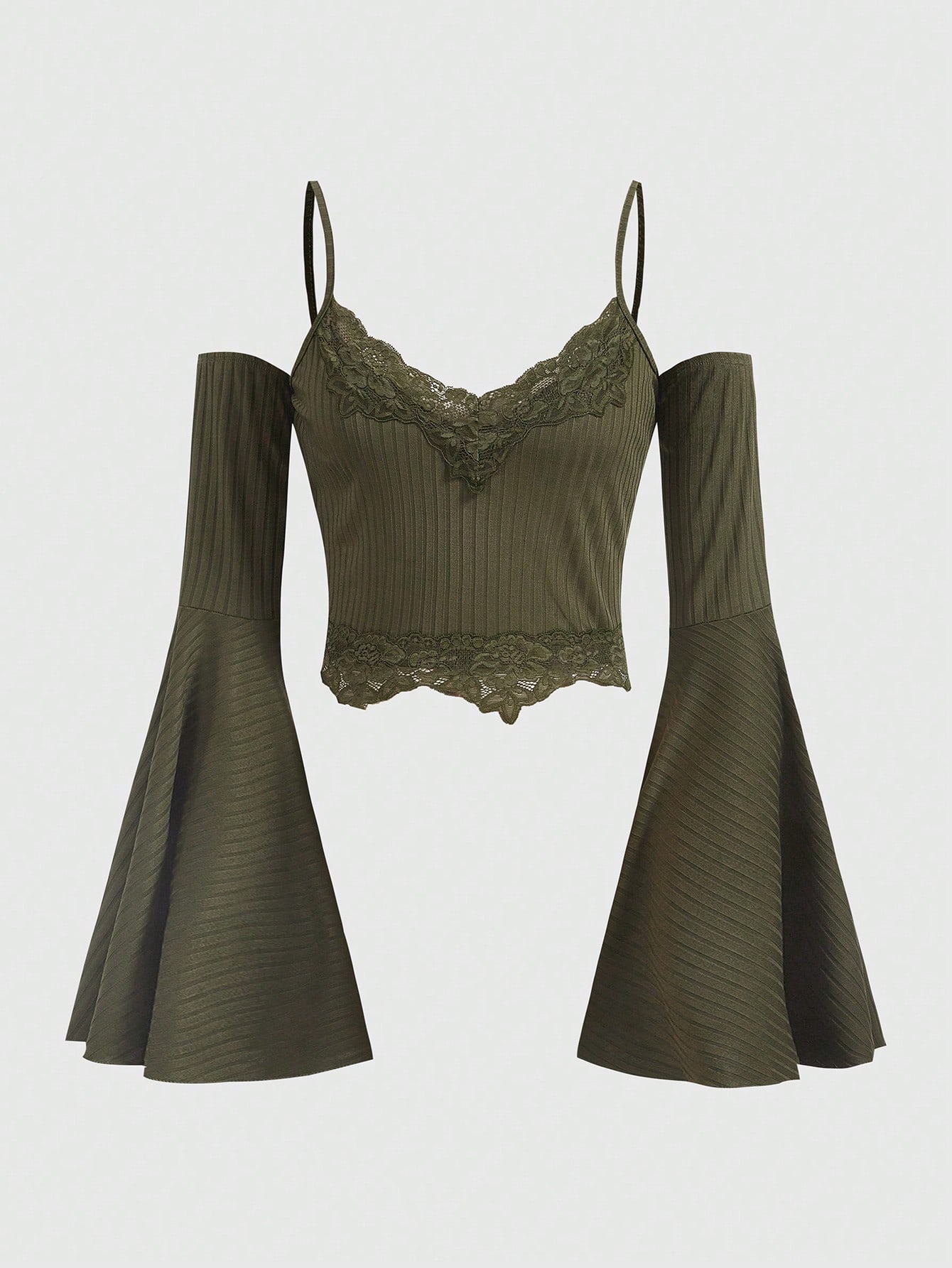 Goth Top En Dentelle À Épaules Dénudées Manches Évasées