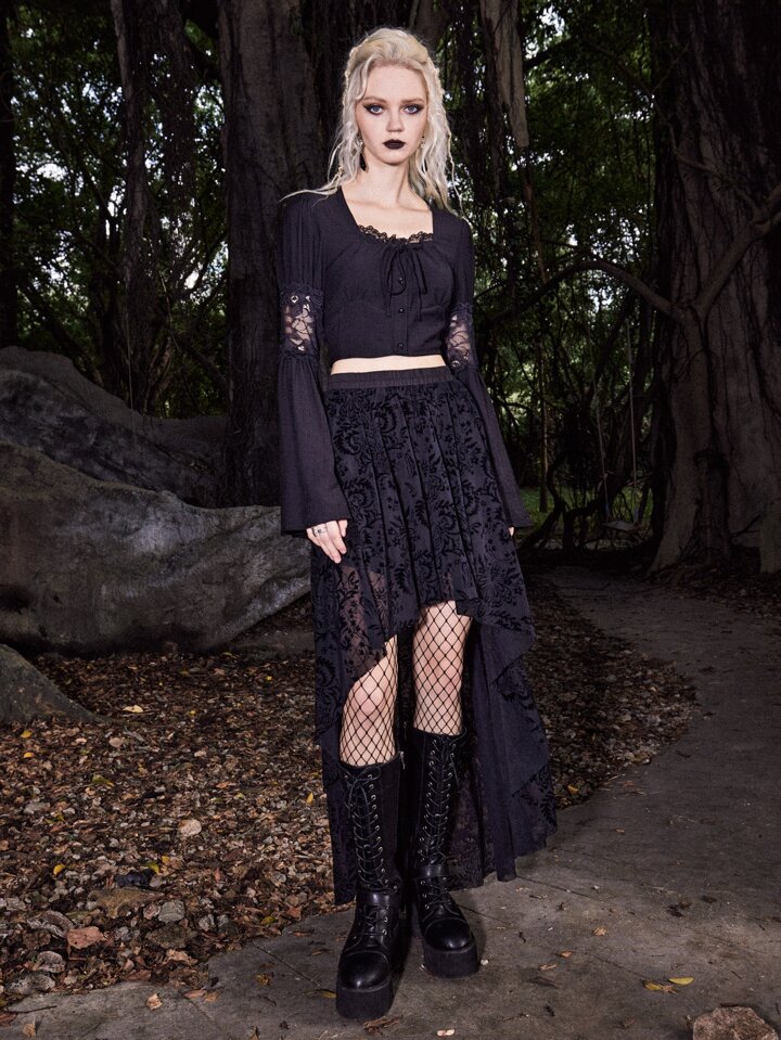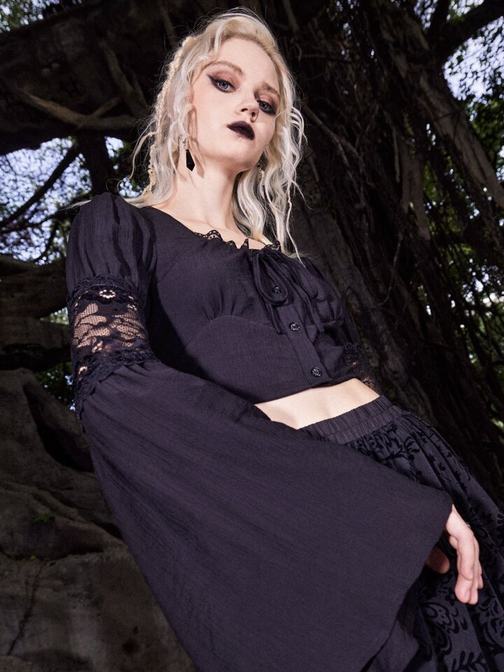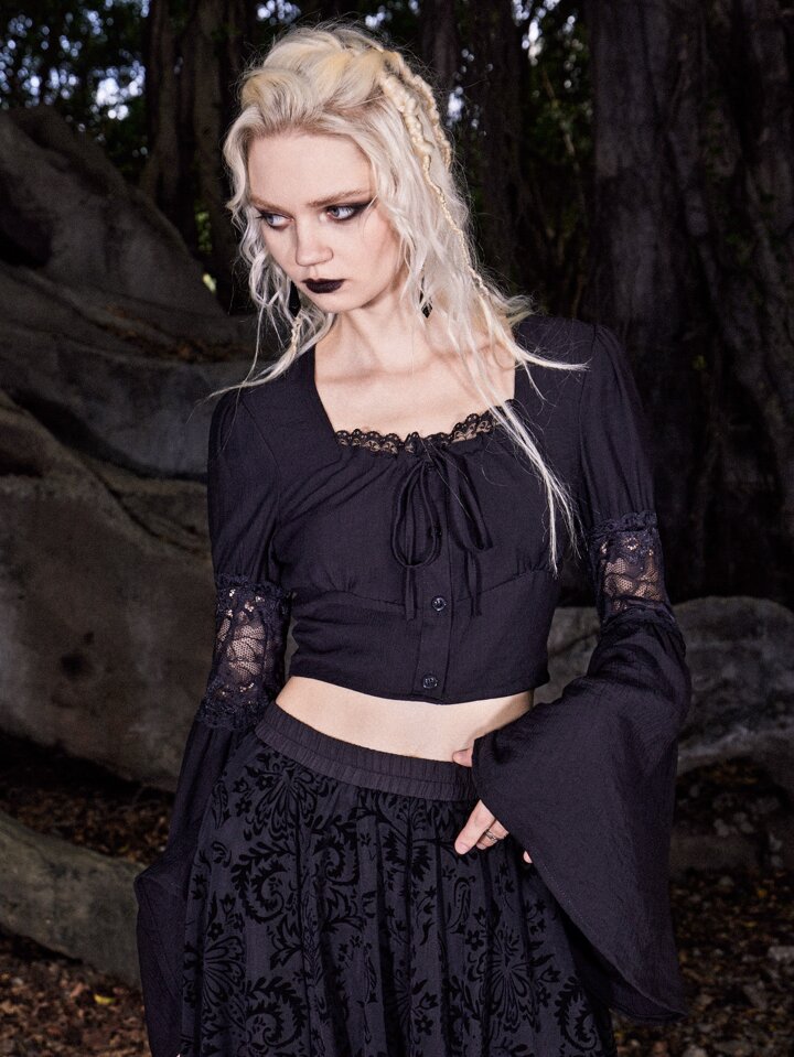 Goth Blouse en dentelle à manches évasées