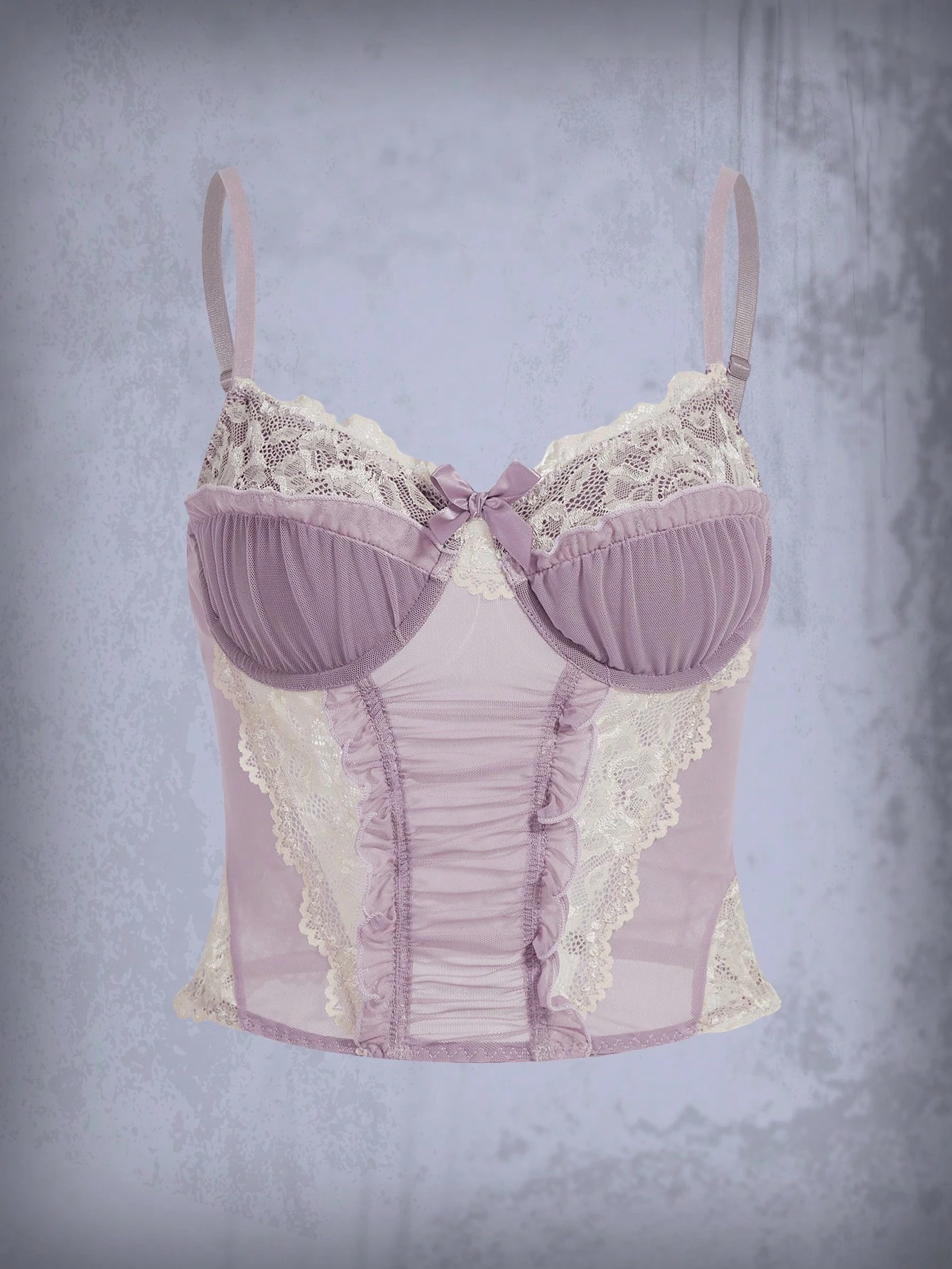 Goth Top À Fines Brides En Dentelle À Ruchés