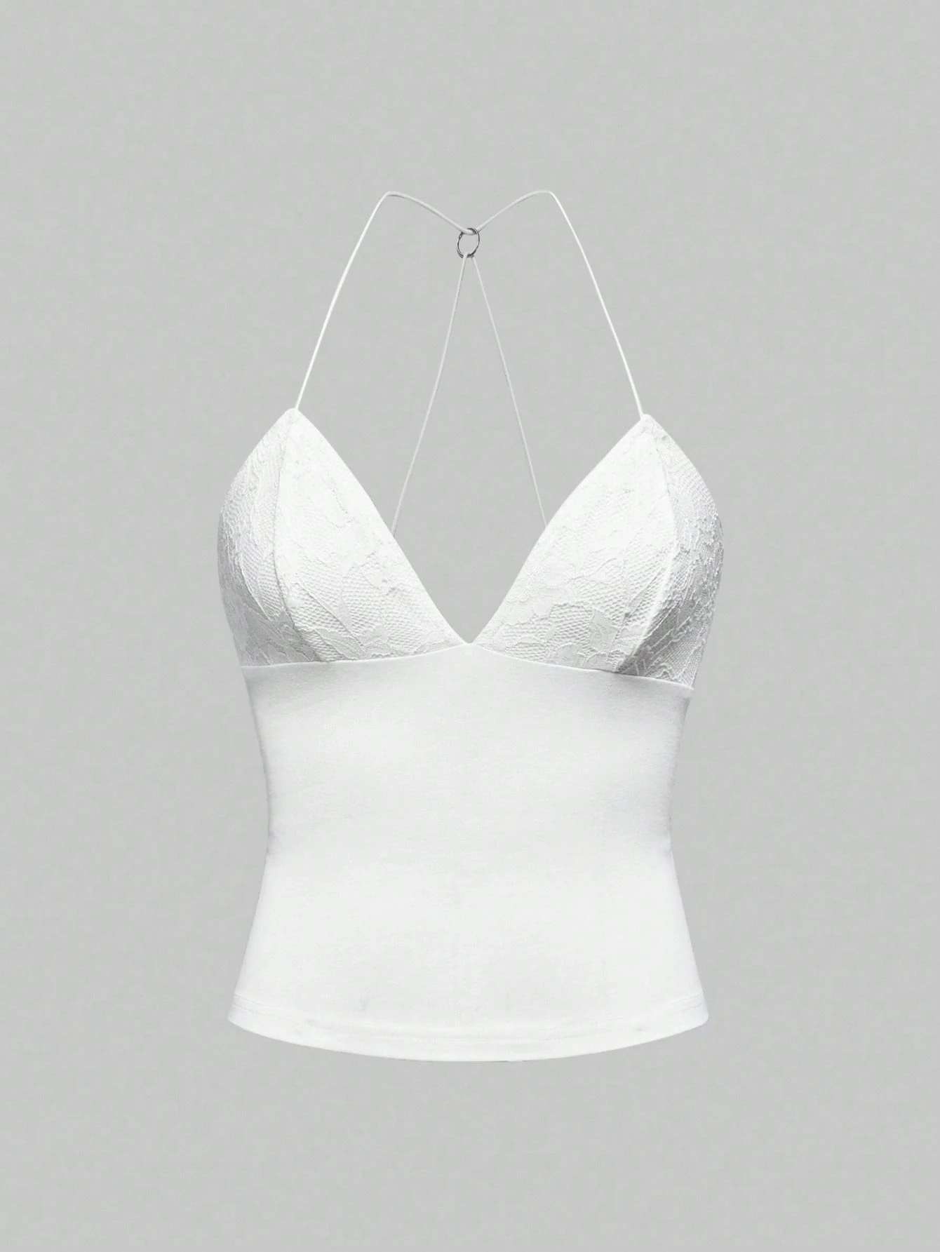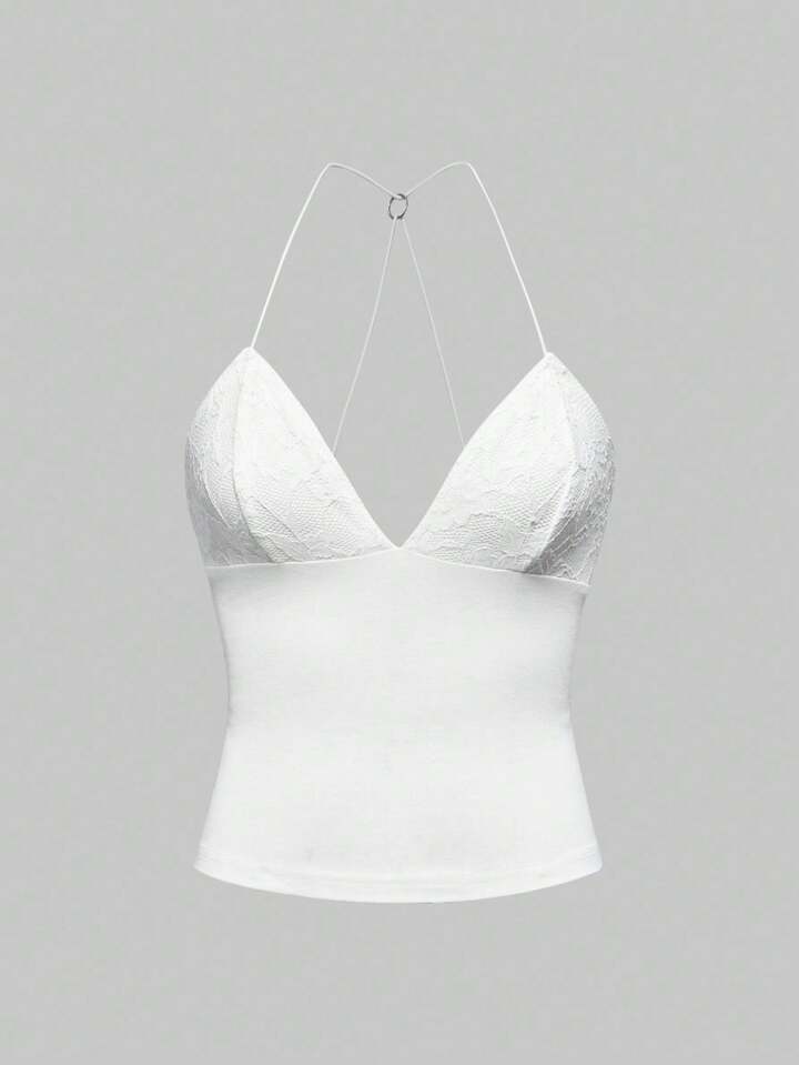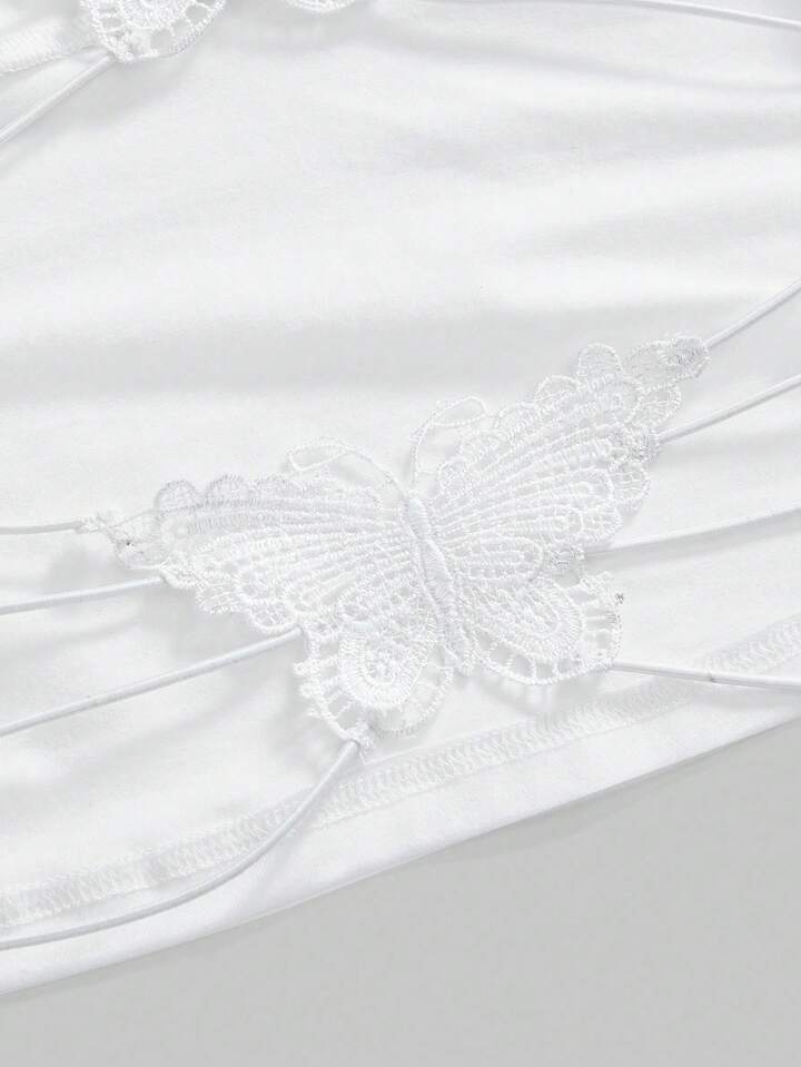 Goth Débardeur moulant à fines bretelles avec dos ouvert, design papillon en dentelle contrastée