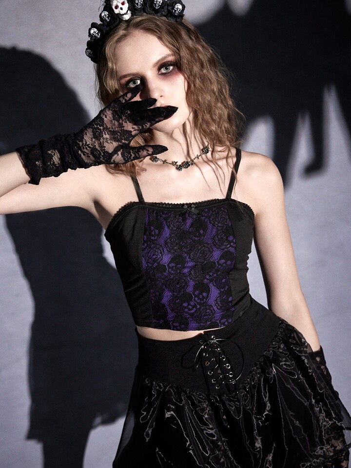 Goth Camisoles Nœud papillon Tulle contrastant Sexy Blocs de couleur Halloween