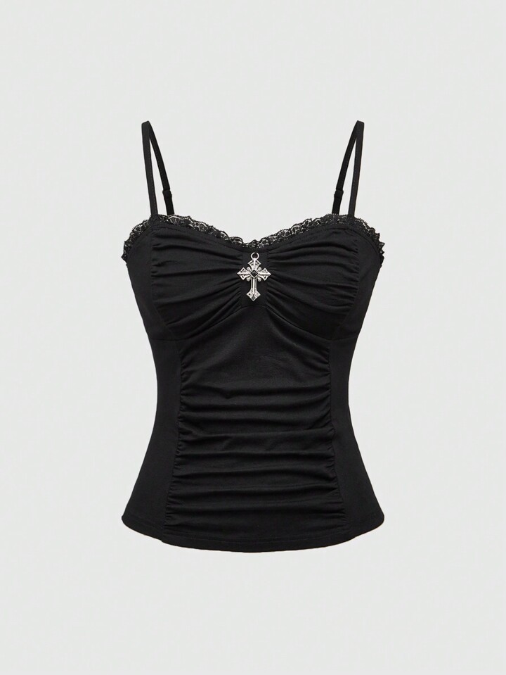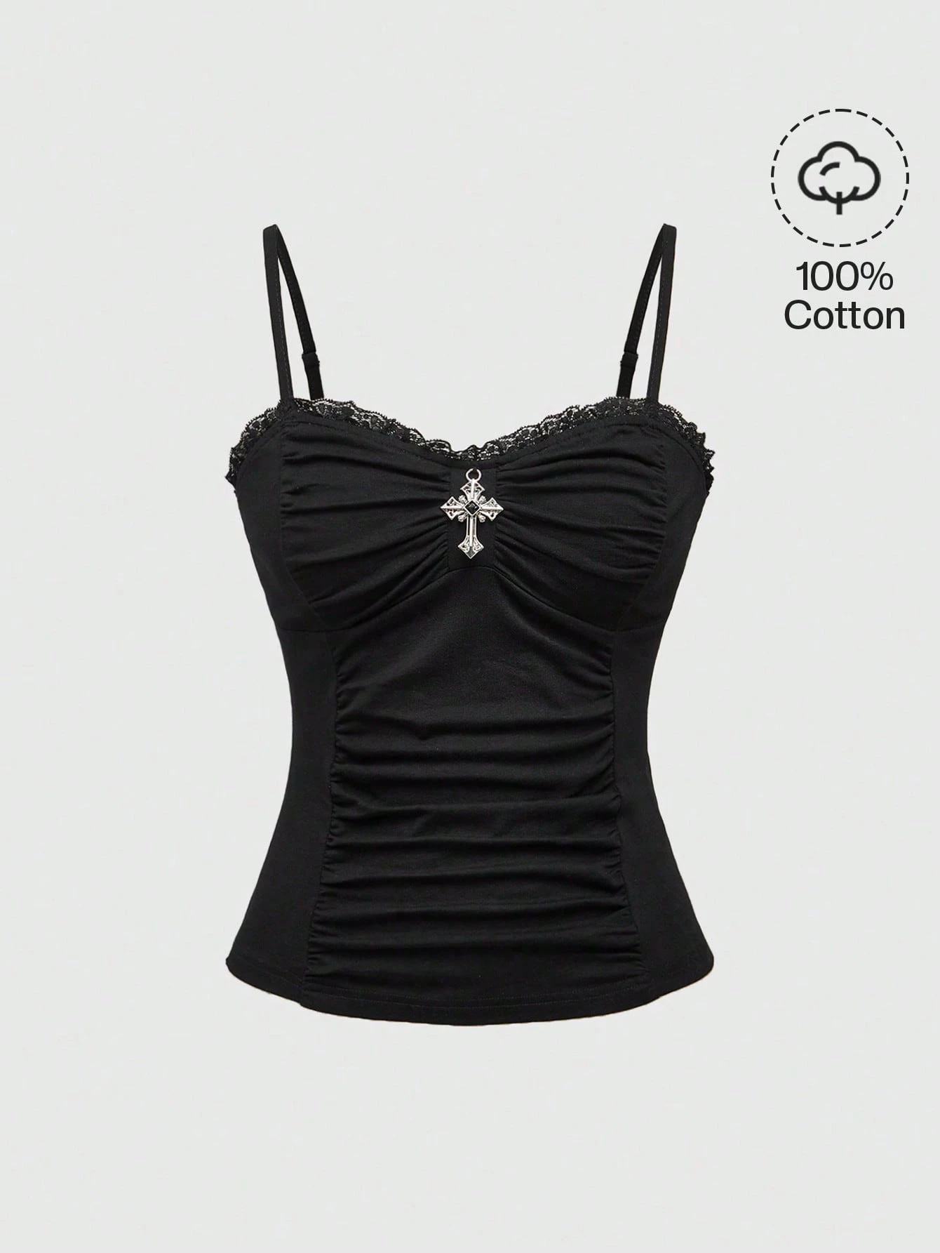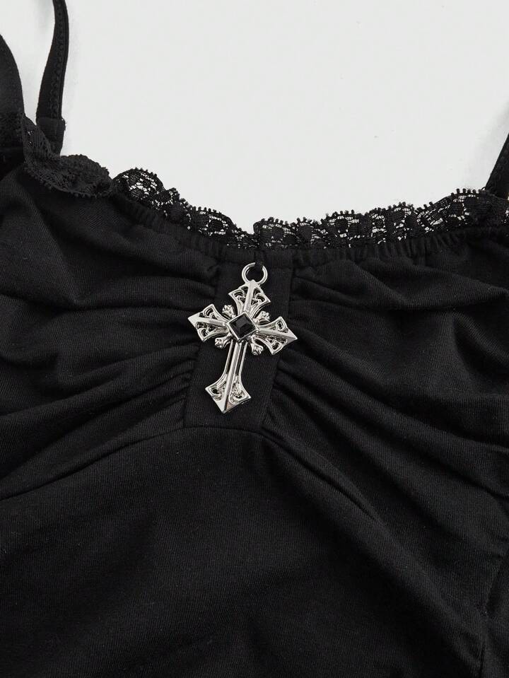 Débardeur ajusté femme avec patchwork en dentelle croix gothique