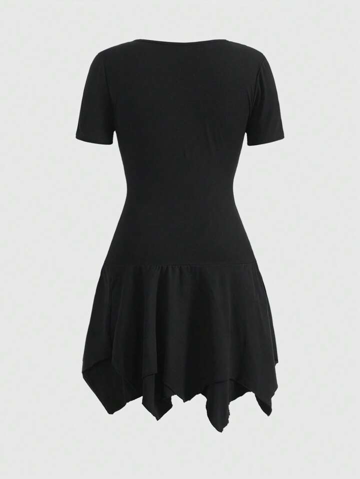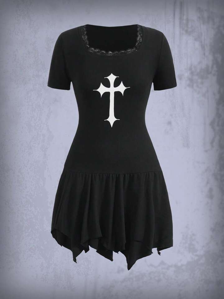 Goth Robe Croisé Imprimé En Dentelle Asymétrique