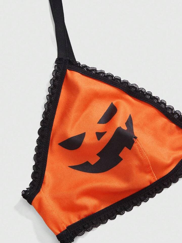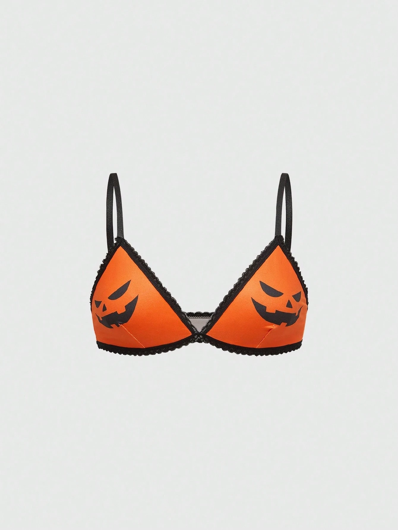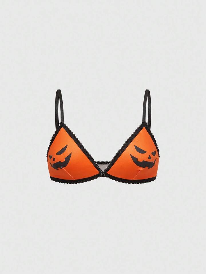 Goth Soutien-gorge sans fil avec imprimé citrouille d'Halloween sombre pour femmes