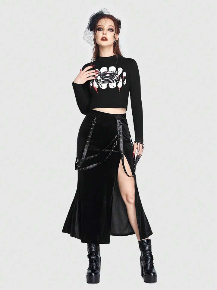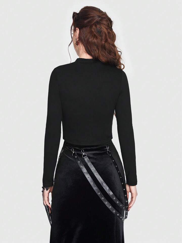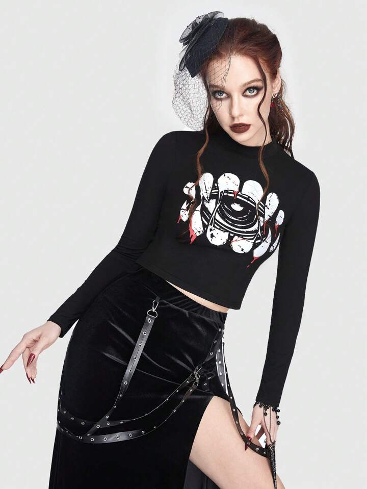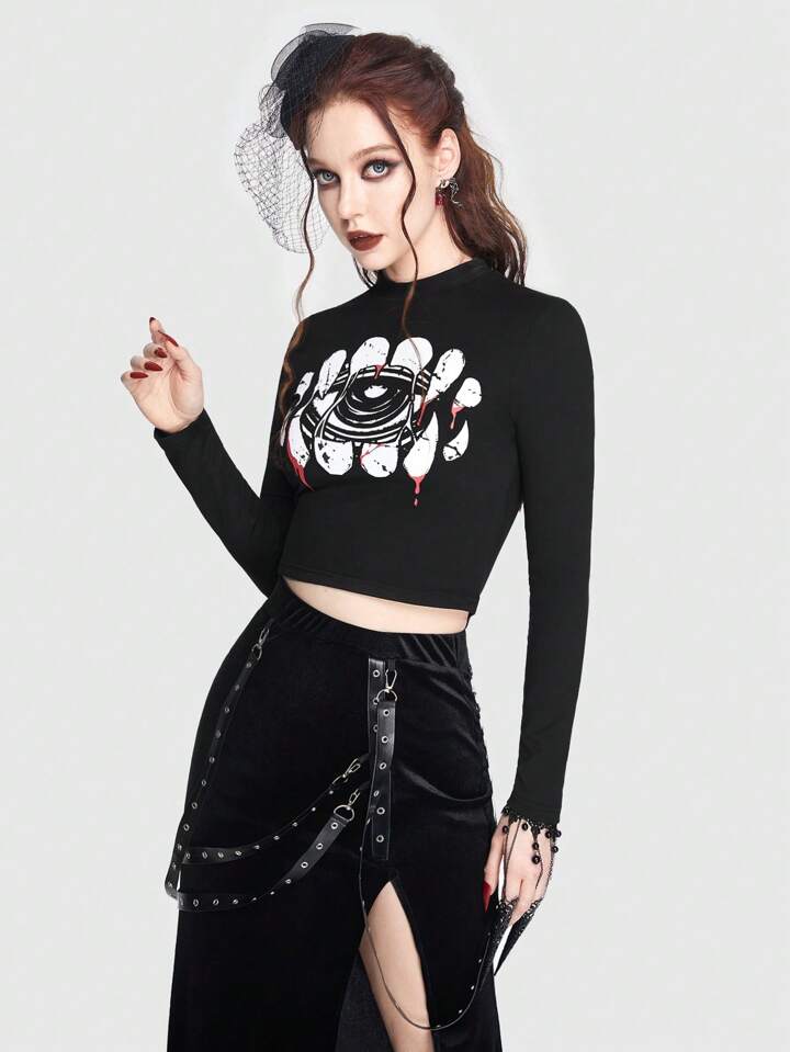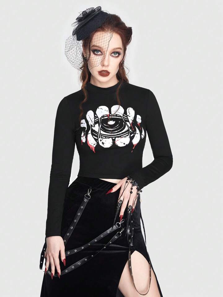 Goth T-Shirt Court Œil Graphique À Col Montant