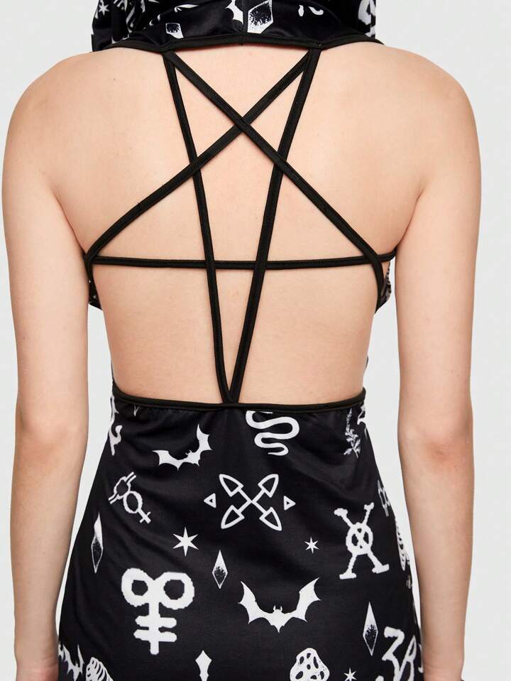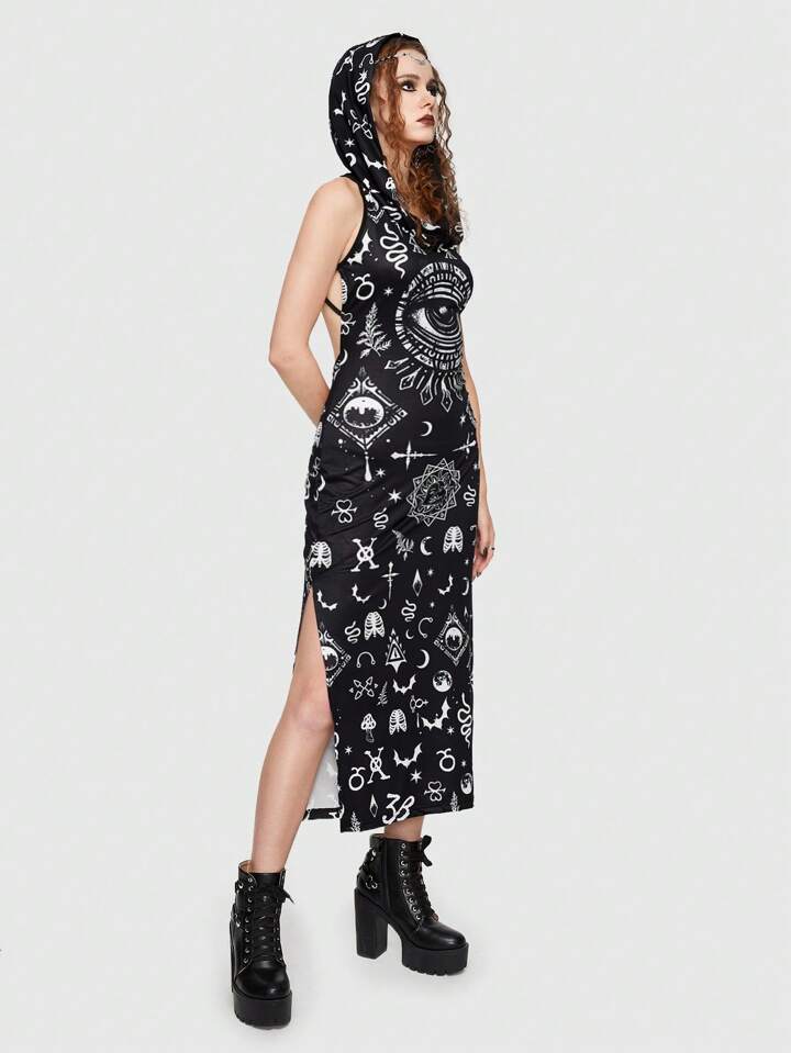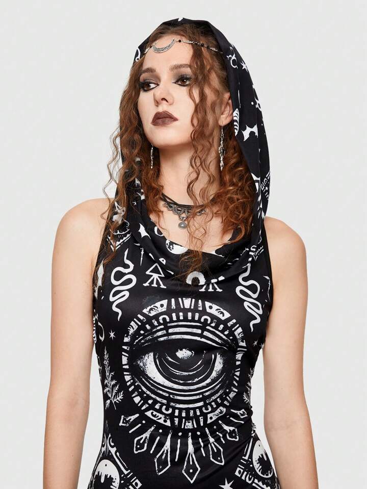Goth Robe À Capuche Imprimés Yeux Fendu Dos-Nu