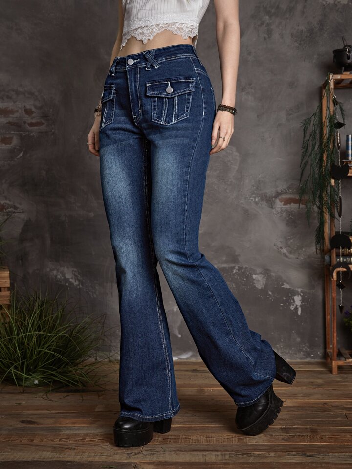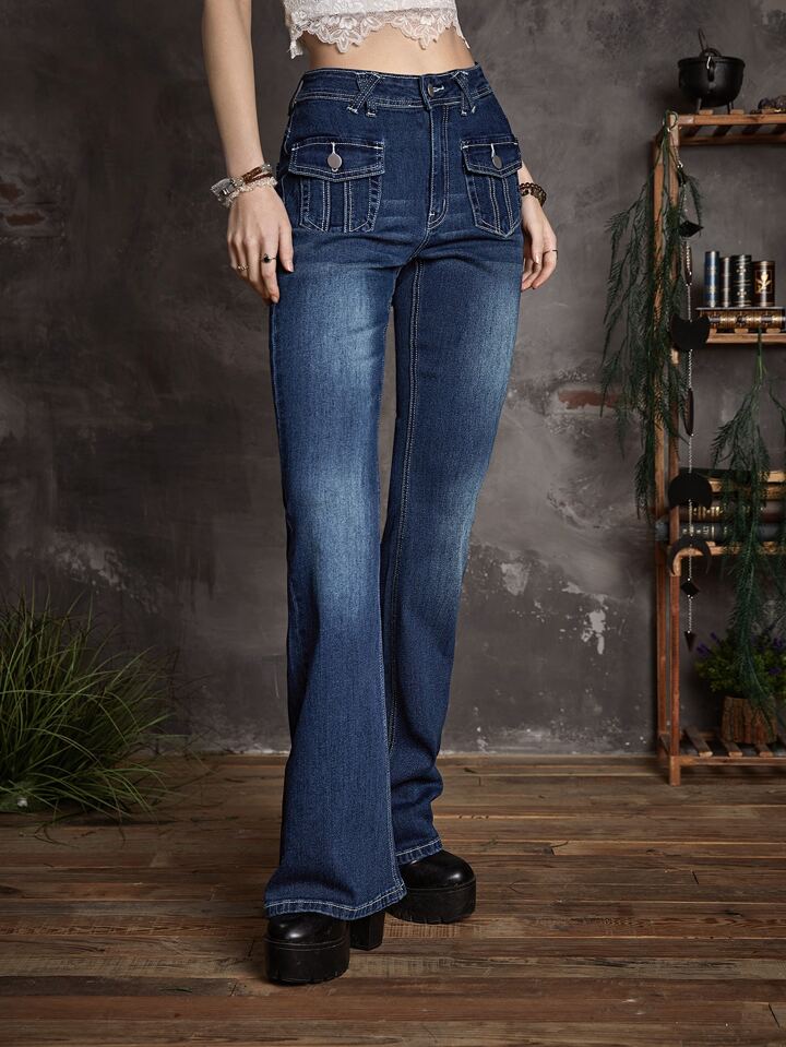 Goth Jeans pour femmes Boutons Poche Fermeture éclair Unicolore