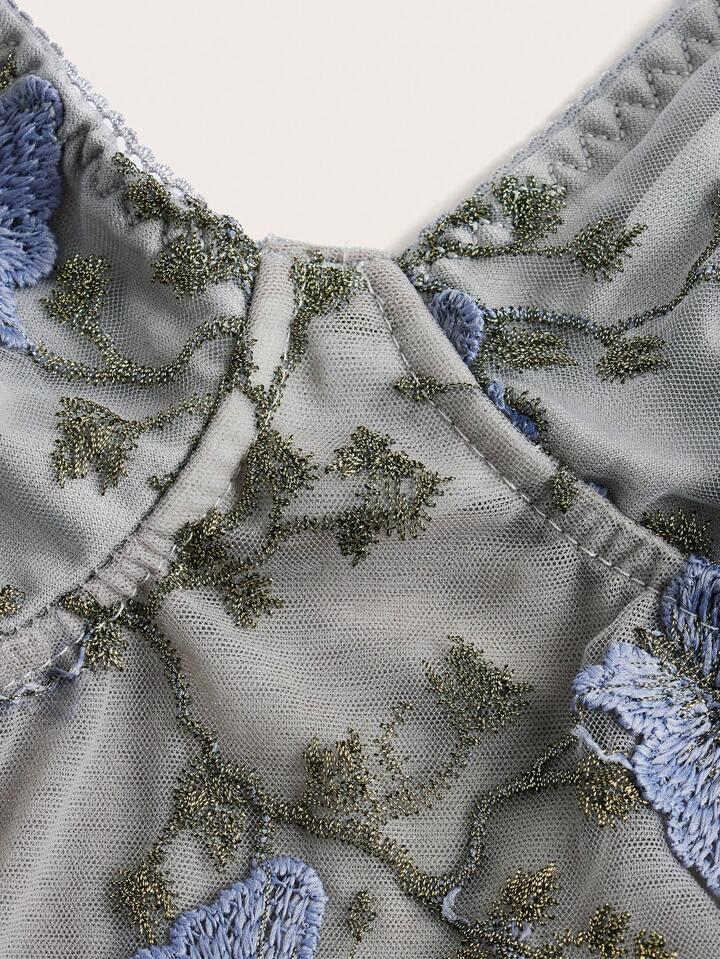 Goth Top À Fines Brides Brodé Fleur À Cordon