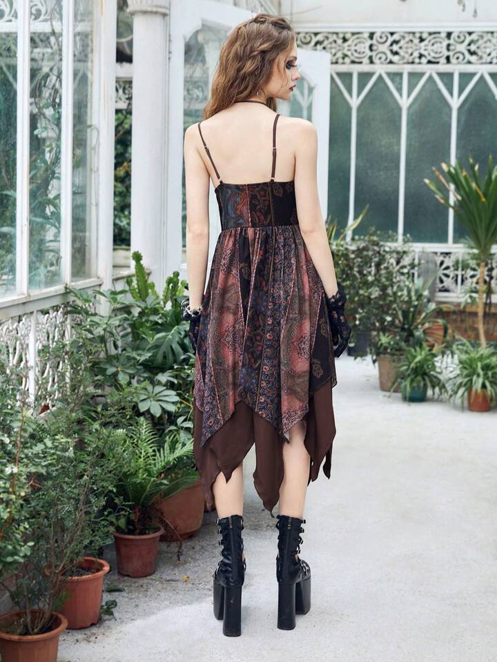 Goth Robe À Fines Brides Imprimé Floral Ourlet Hanky (Sans Ceinture)