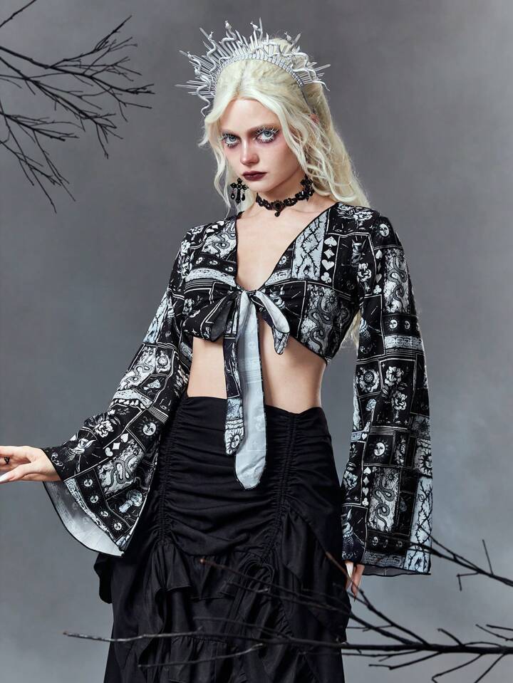 Goth Haut Court Noué Sur Le Devant À Imprimé Floral Et Serpent
