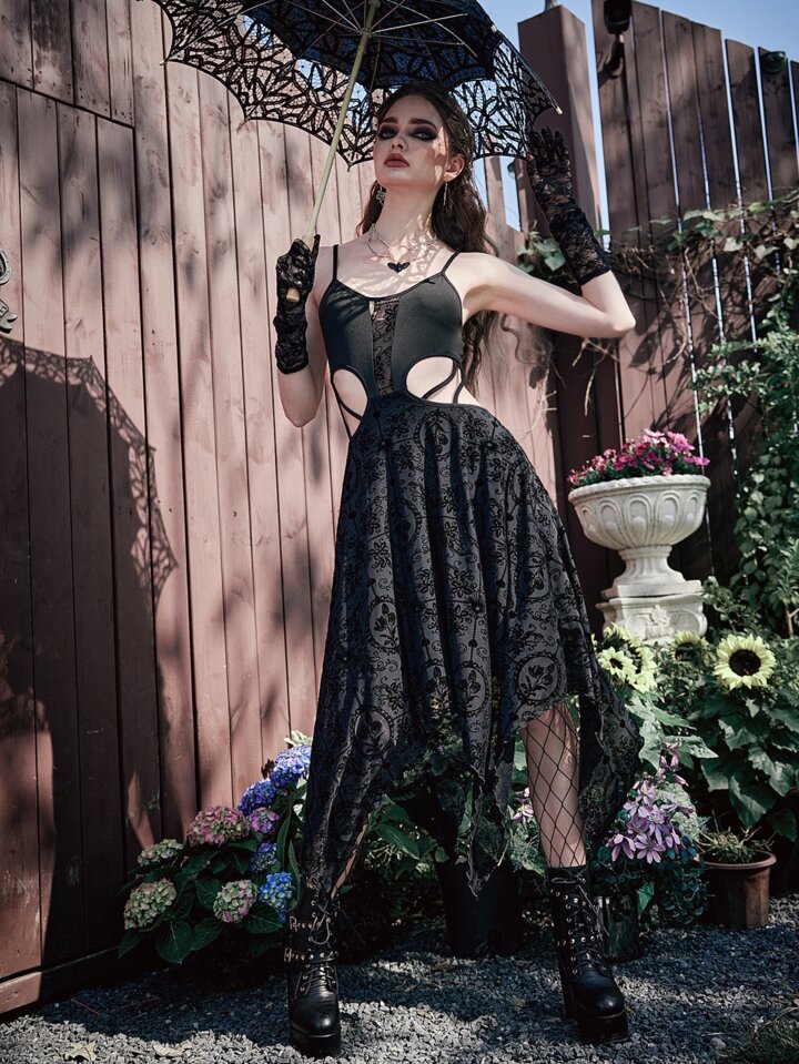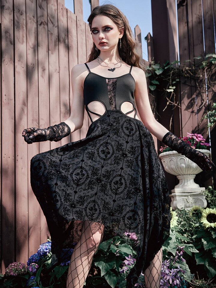 Goth Robe À Fines Brides Imprimé Graphique Découpé