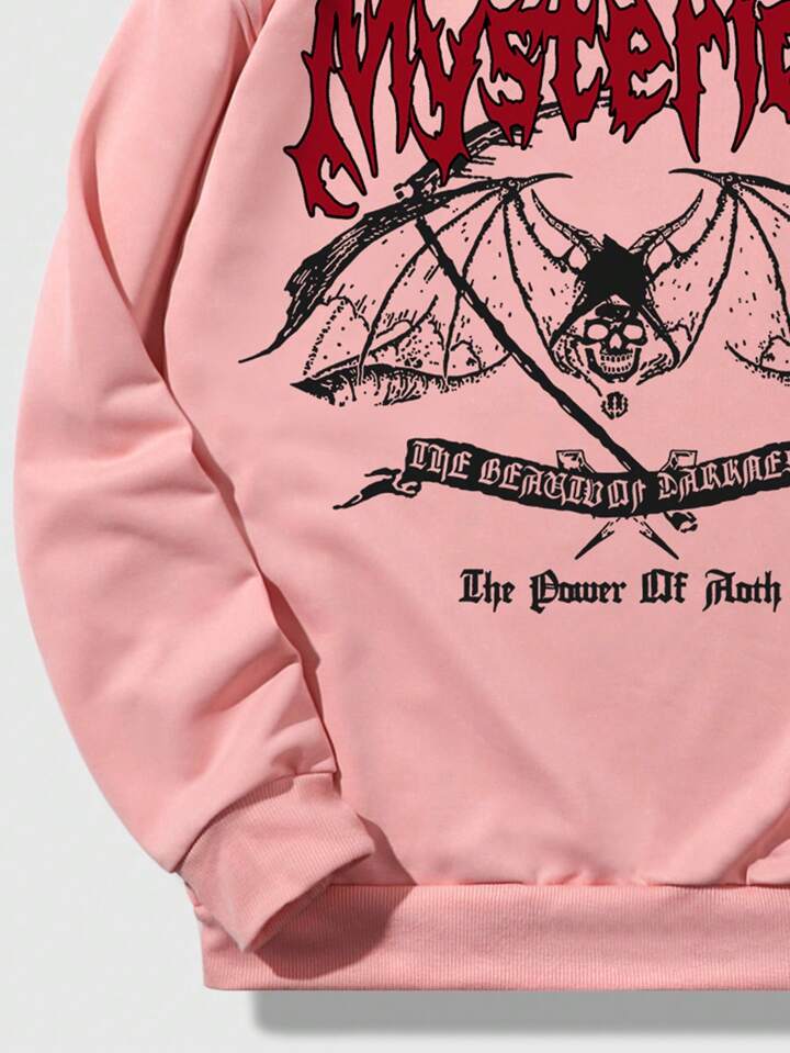 Goth Homme Sweat-Shirt À Capuche Chauve Souris & À Lettres À Cordon