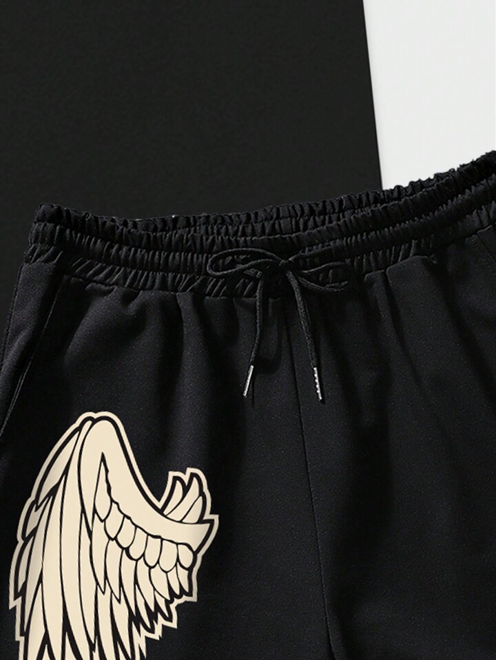 Goth Homme croisé aile graphique T-shirt & à cordon Short