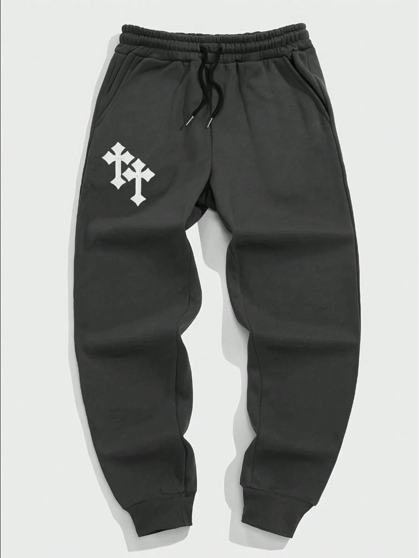 Goth Homme Pantalon De Survêtement À Broderie Motif Croix À Cordon