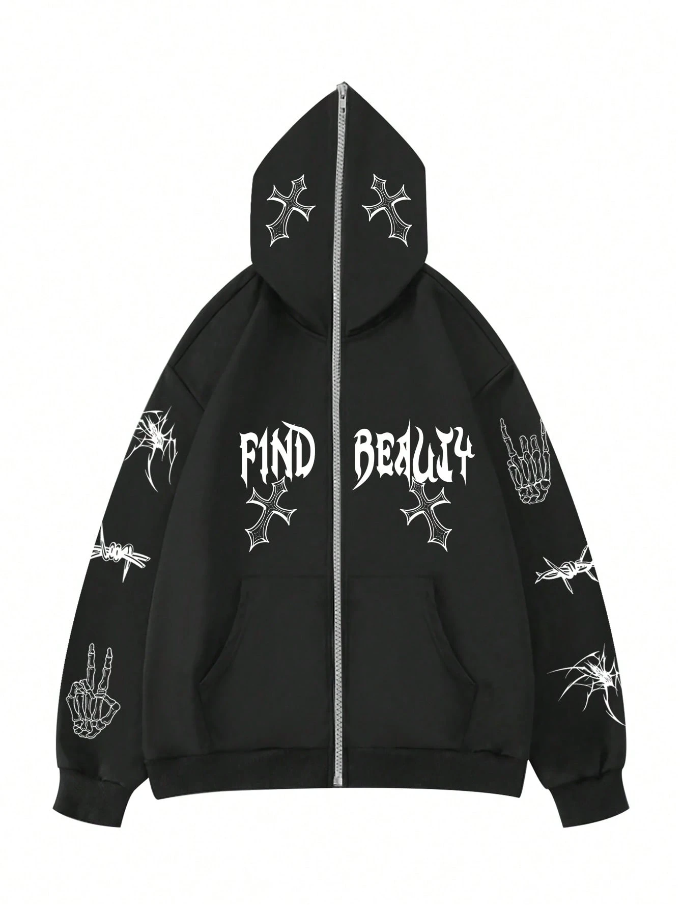 Goth Homme Sweat-Shirt À Capuche Zippé Imprimé Halloween