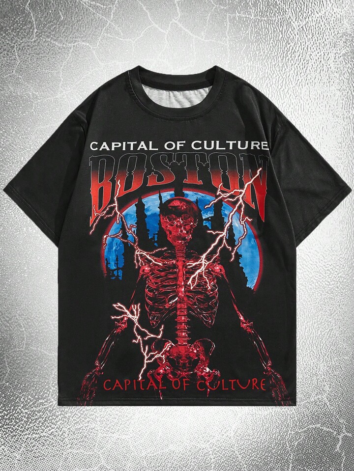 Goth Homme T-shirt Imprimé Lettre Et Squelette