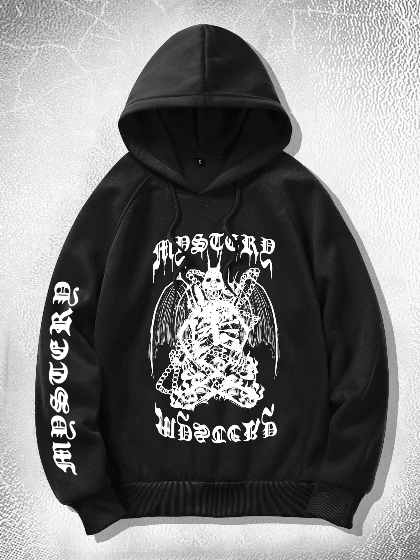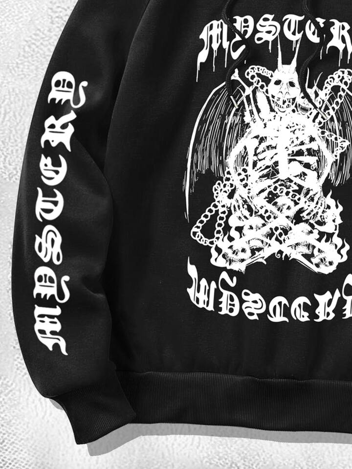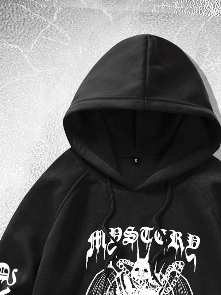Goth Homme Sweat-shirt à capuche à motif tête de mort et lettre à cordon