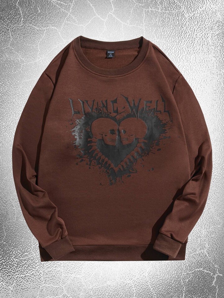 Goth Homme Sweat-shirt à motif tête de mort et lettre