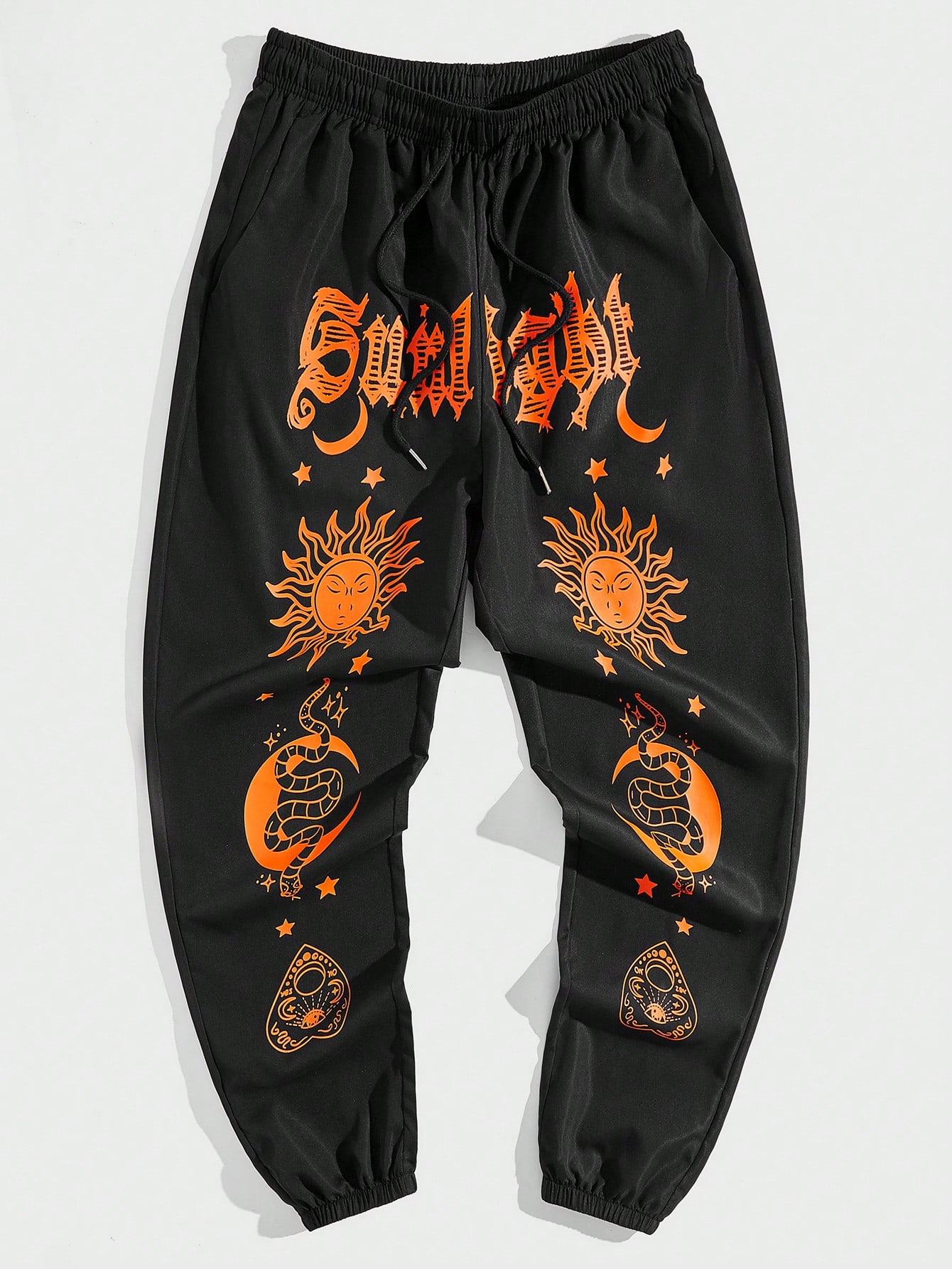 Goth Homme Pantalon Lettre & Imprimé Soleil À Cordon