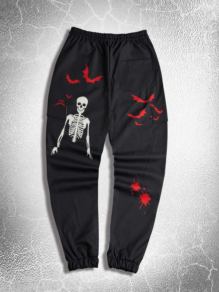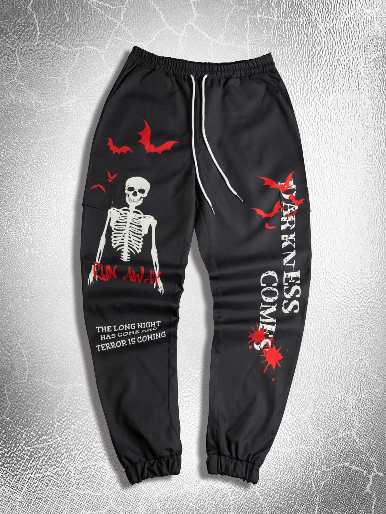 Goth Homme Pantalon à motif squelette et graphique de slogan à cordon