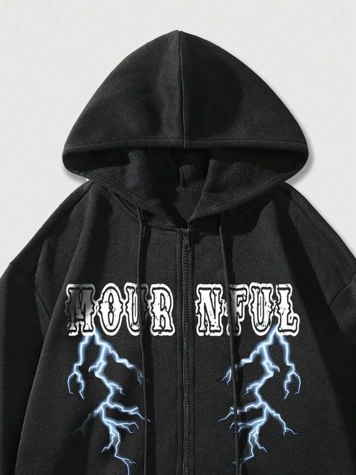 Goth Homme Sweat-Shirt À Capuche Tête De Mort & Graphique De Slogan À Cordon