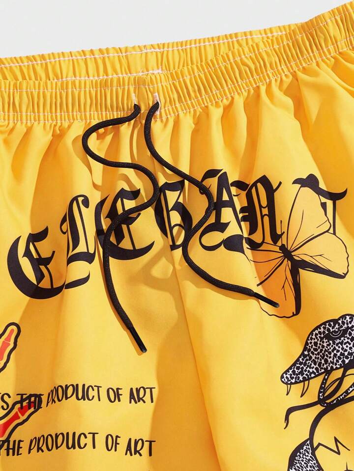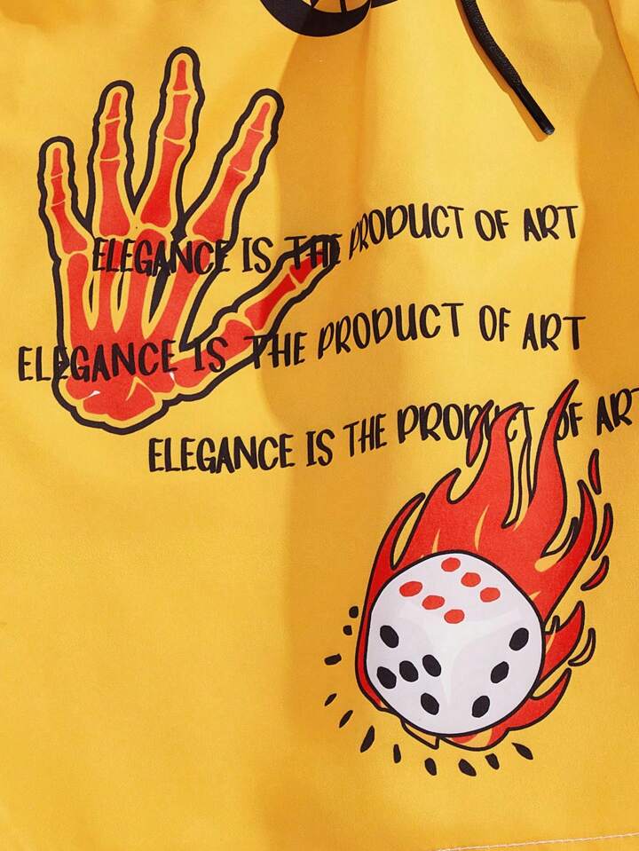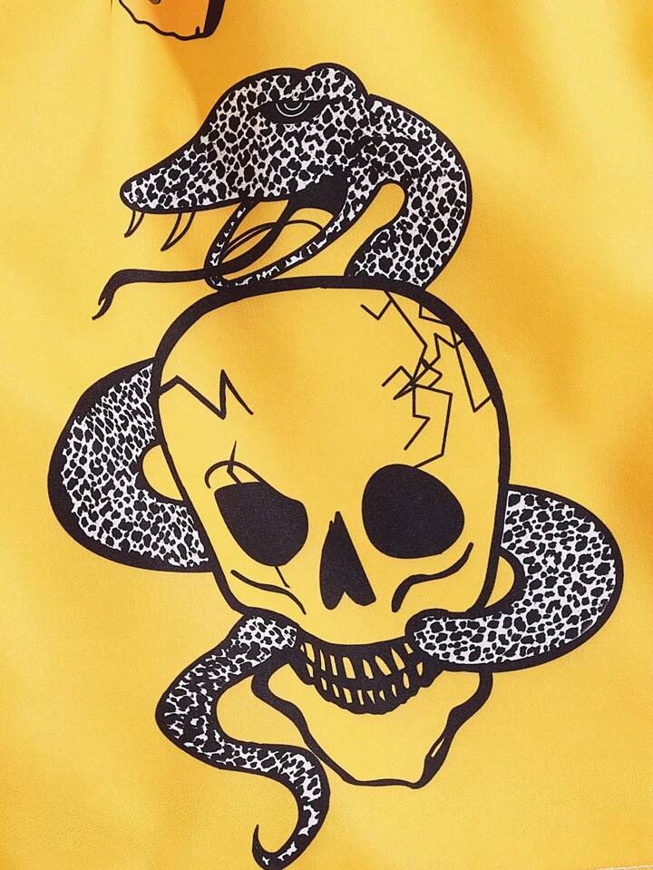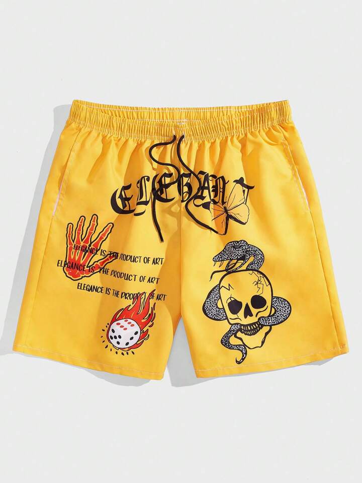 Goth Homme Short Tête De Mort & Graphique De Slogan À Cordon